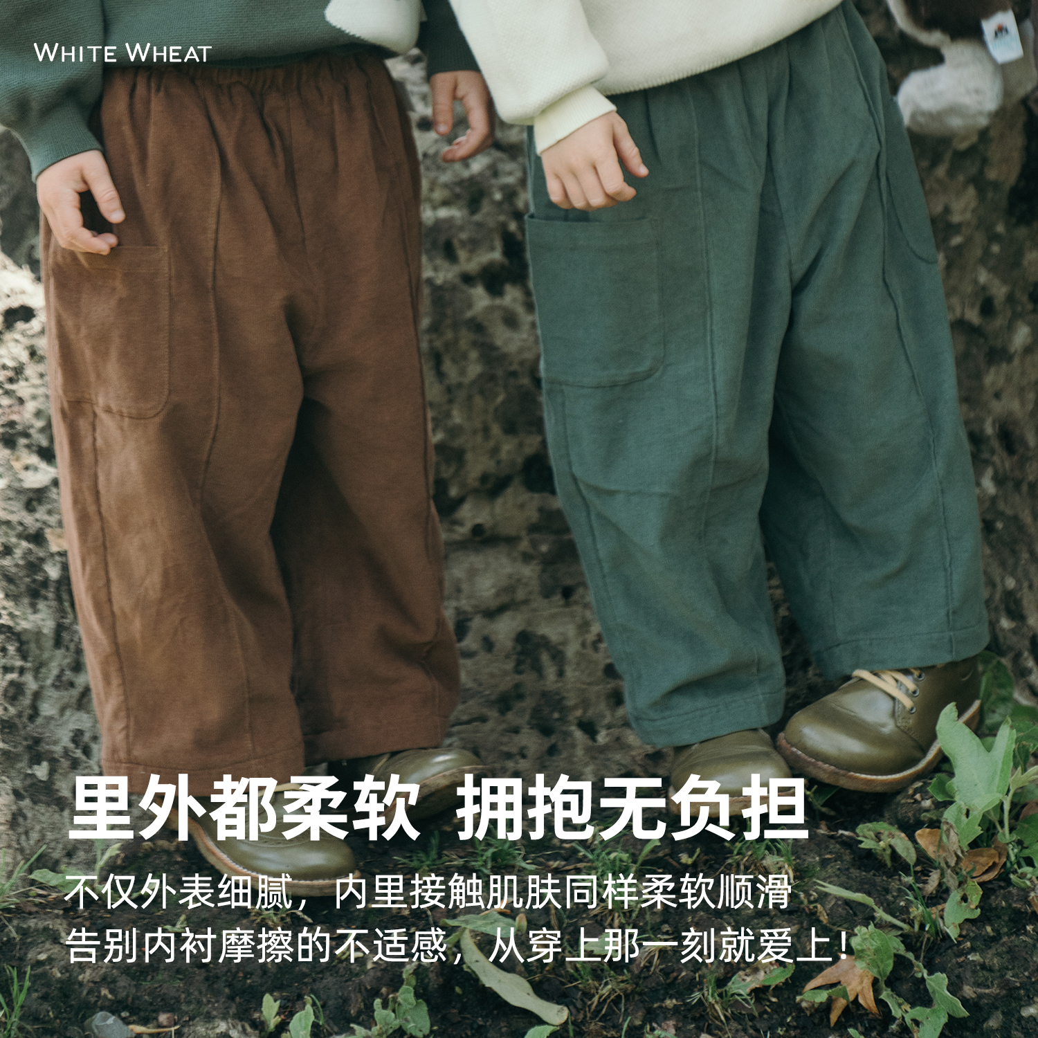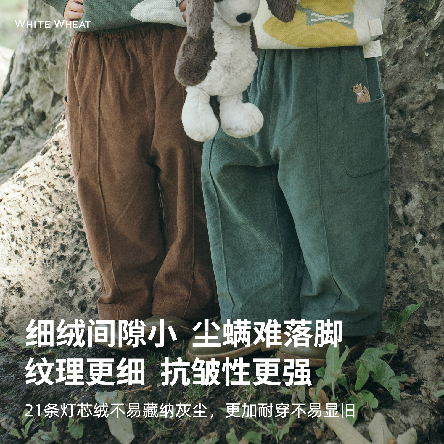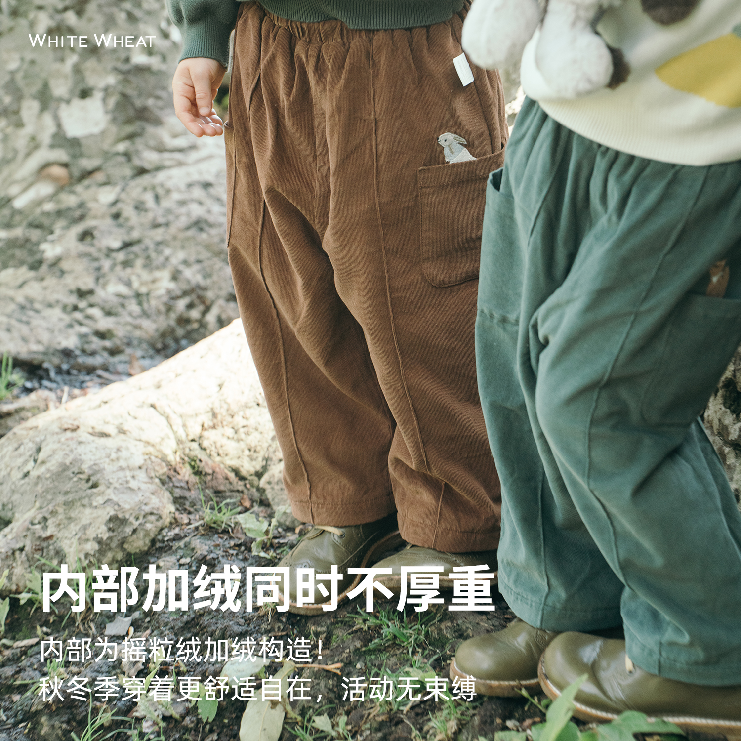 子灯芯绒加绒纯棉男女童宝宝直筒裤 裤 新款 whitewheat儿童2025冬季