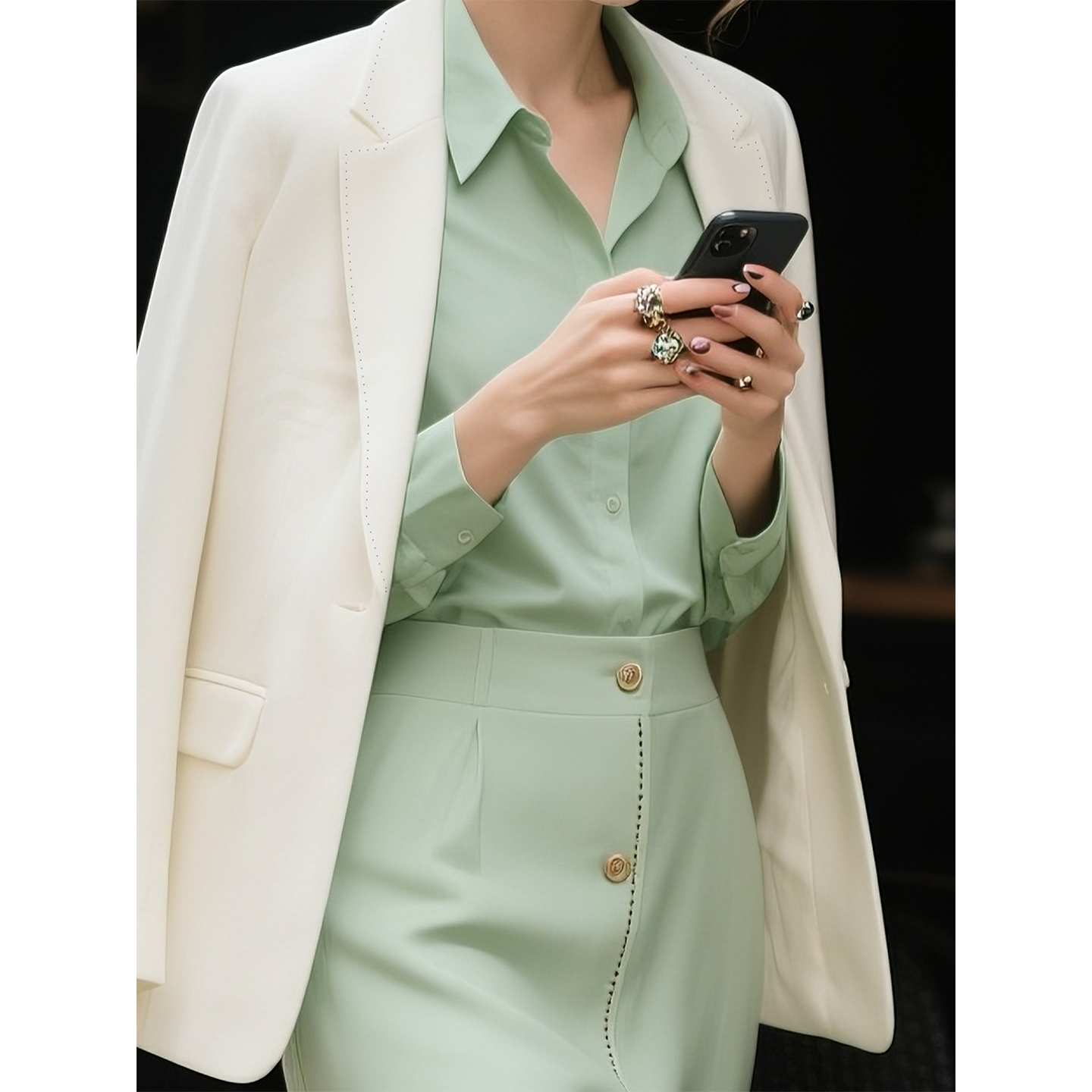 牛仔裤 高腰垂感天丝羊毛休闲直筒西装 女春秋2025新款 藏青色阔腿裤