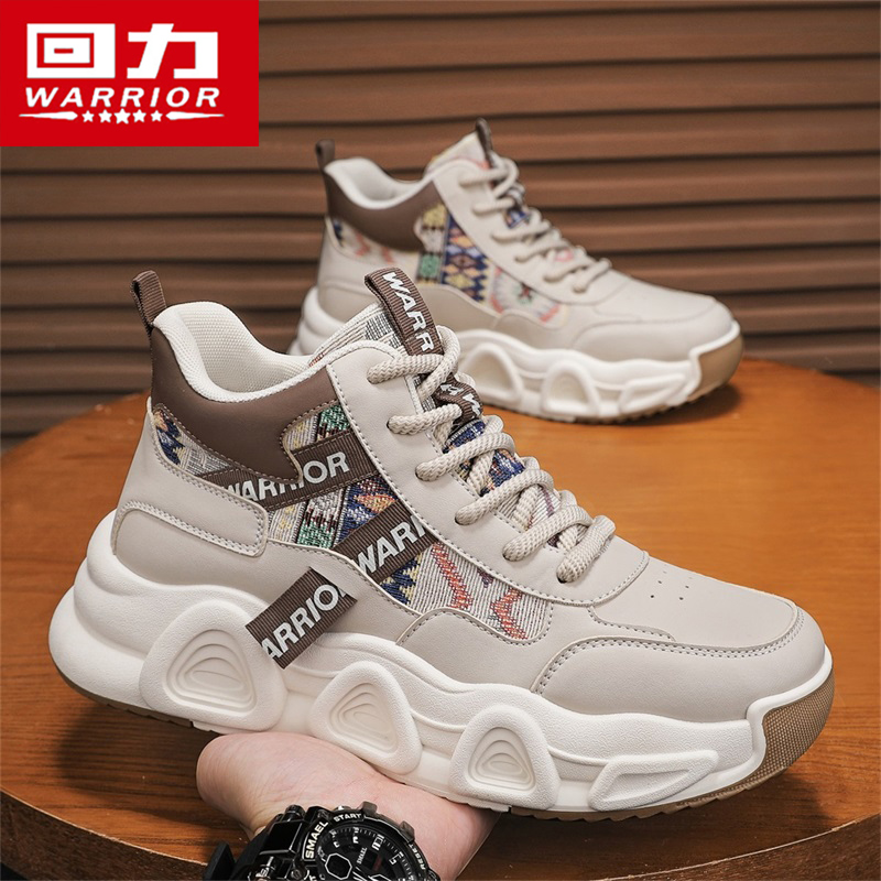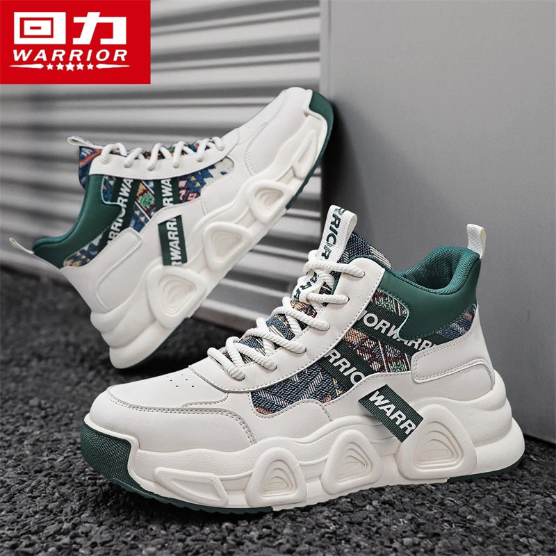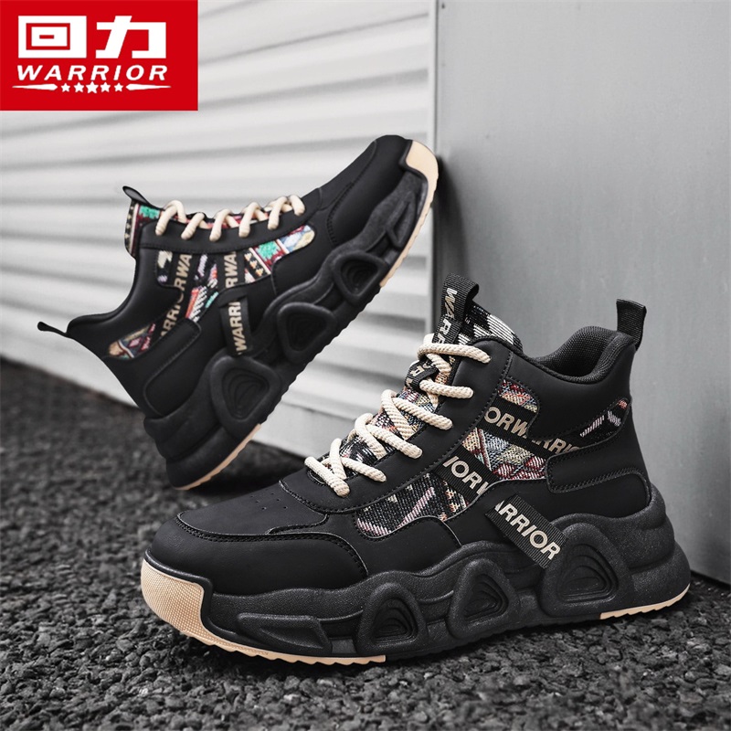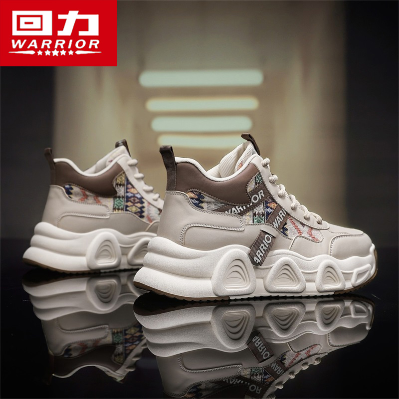 运动鞋 高帮休闲鞋 秋冬新款 子学生厚底男鞋 皮面鞋 征服鸿星尔克板鞋