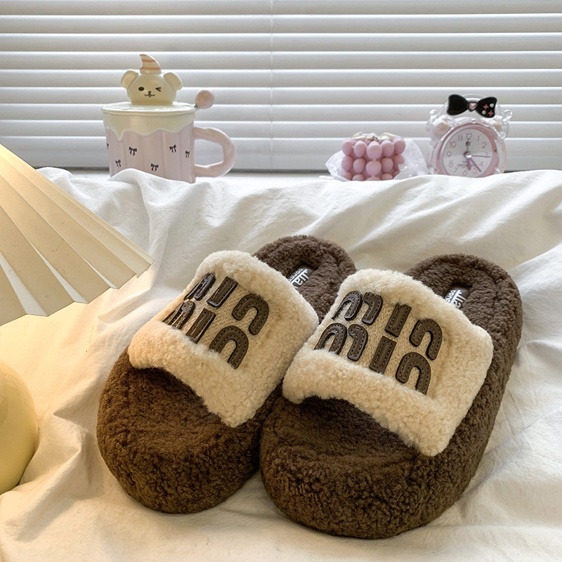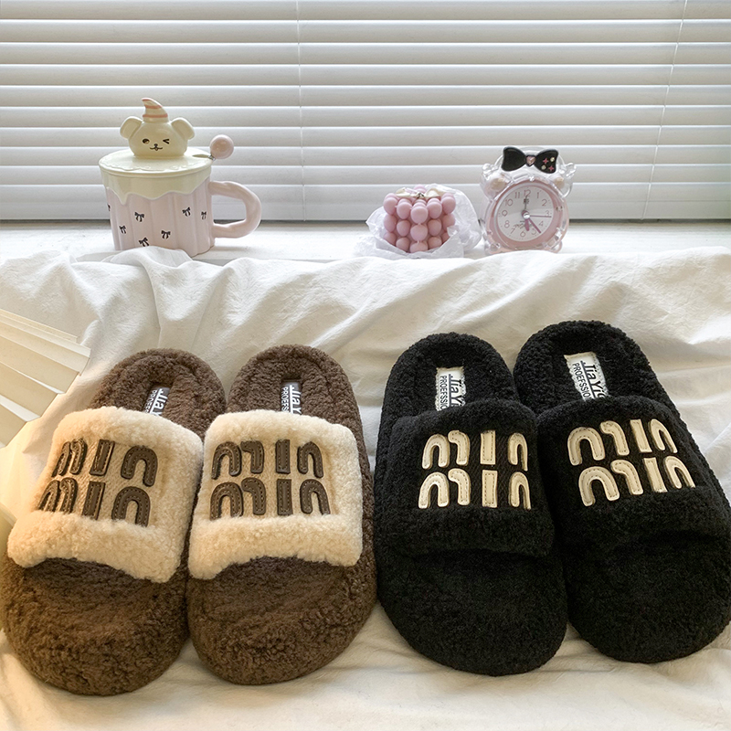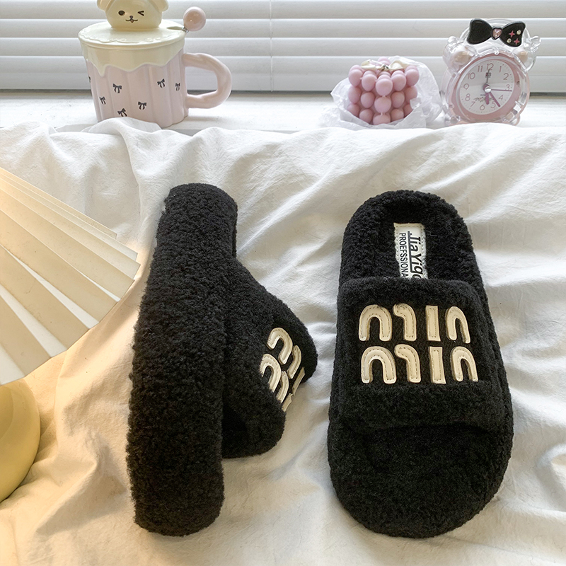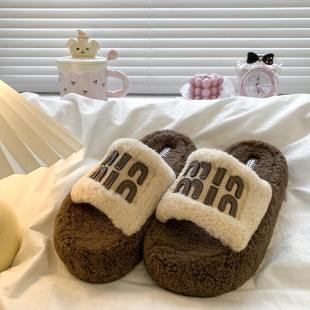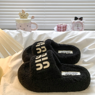 高级感毛茸茸一字棉拖鞋 时尚 女秋冬外穿2025新款 复古厚底毛毛拖鞋