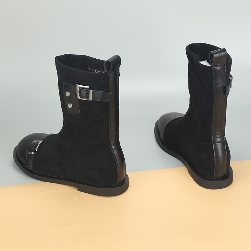 靴子 中帮休闲皮靴中高帮英伦风通勤工装 马登黑色马丁靴男款 秋冬季