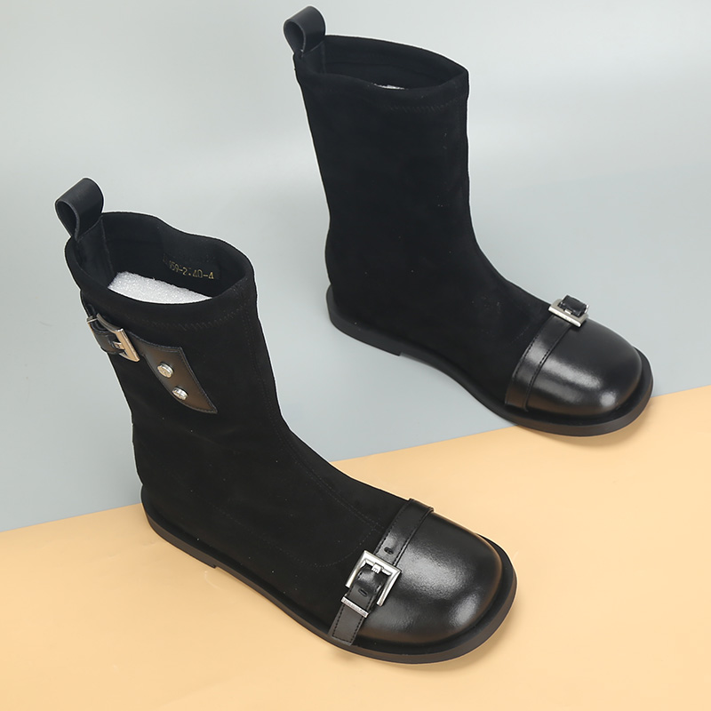达芙妮堆堆靴女中筒秋冬季 美拉德加绒短靴骑士马丁靴 靴子2025新款
