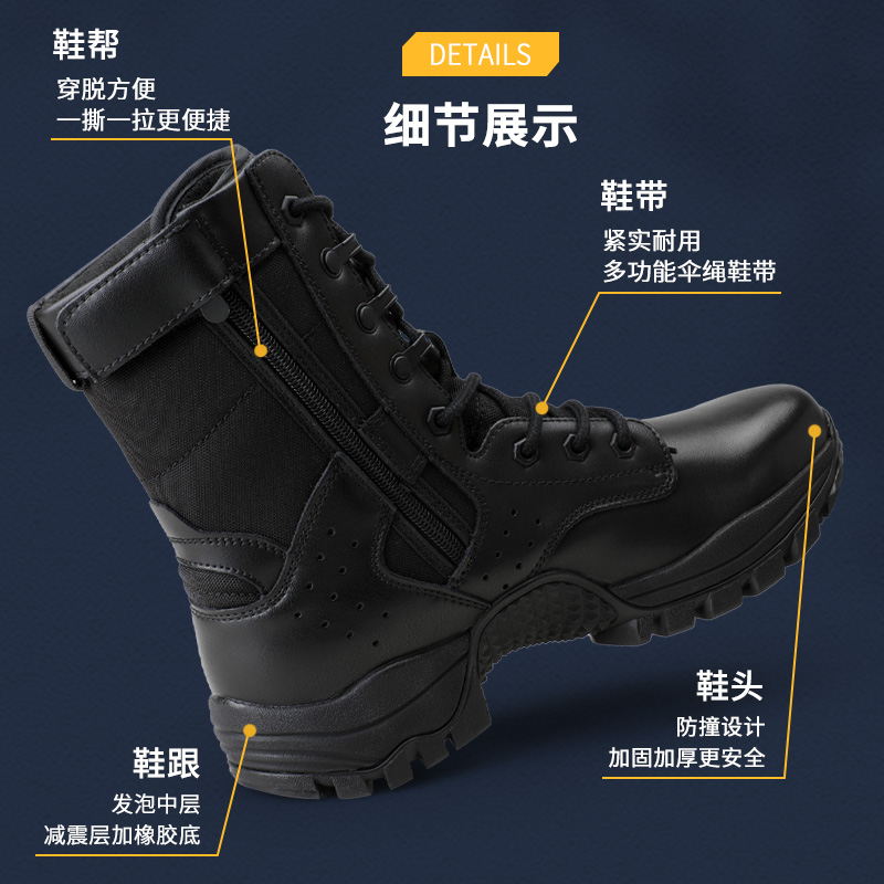 际华3515强人男靴户外高帮靴防刺穿耐磨训练靴黑色登山工装 靴子男