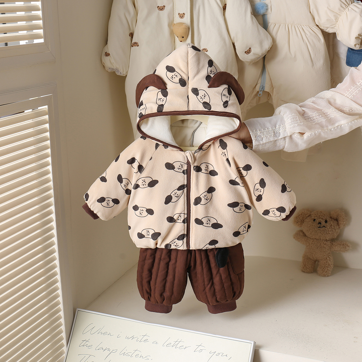 婴儿冬装 男宝宝夹棉加厚外套棉衣棉裤 保暖分体两件套 套装 儿童冬季