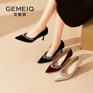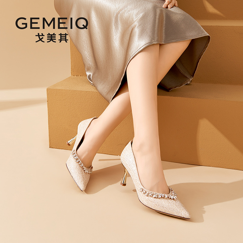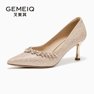 秀禾不累脚浅口单鞋 吉娜同款 女新款 细跟高跟婚鞋 子3YKF预 百丽新款