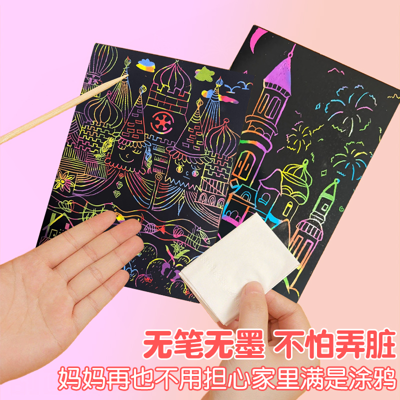 a4刮画纸小学生炫彩刮刮画儿童8k刮蜡纸幼儿园创意型黑色刮刮纸