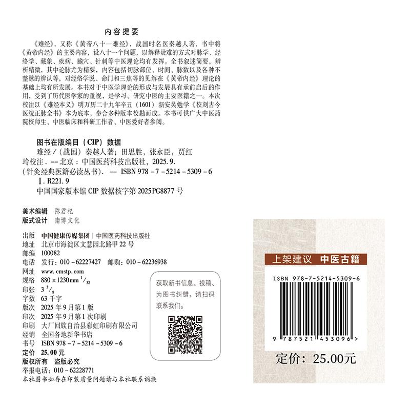 战国 医籍必读丛书 秦越人著 中国医药科技出版 9787521453096 难经 社 针灸经典