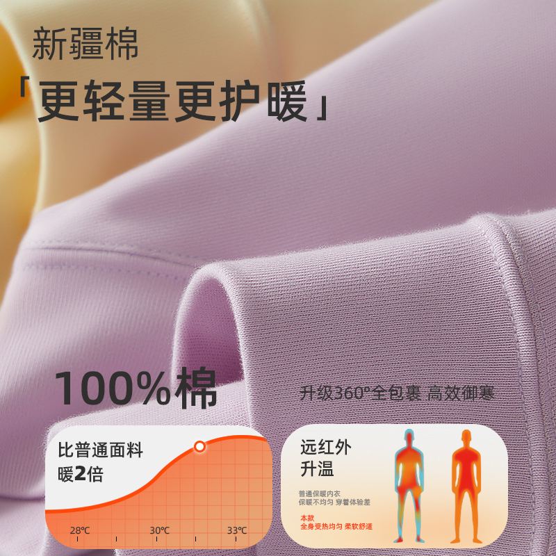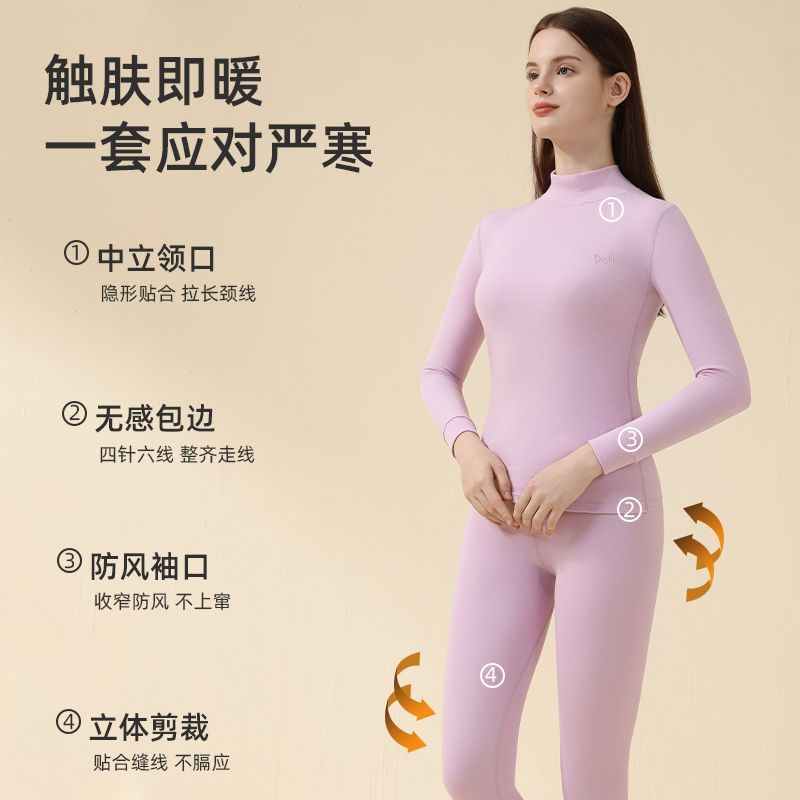 2025秋冬款 猫人纯棉保暖内衣女士无痕套装 抗静电发热打底秋衣秋裤