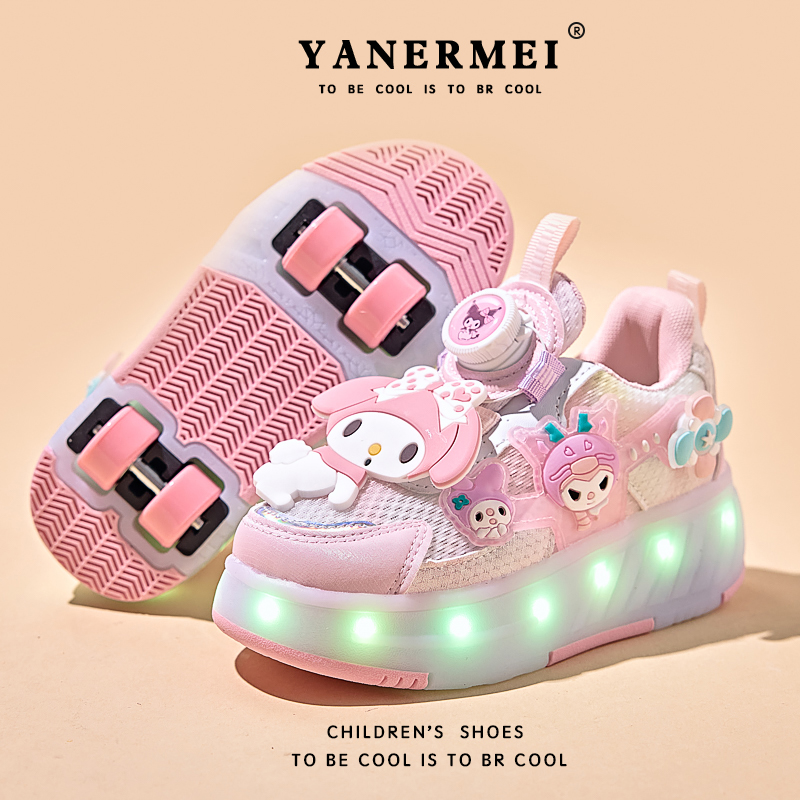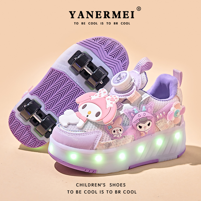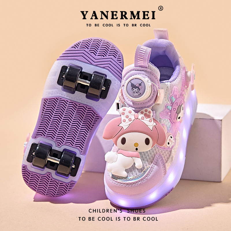学生女孩滑轮鞋 儿童暴走鞋 四轮发光 2025春秋新款 美乐蒂女童溜冰鞋