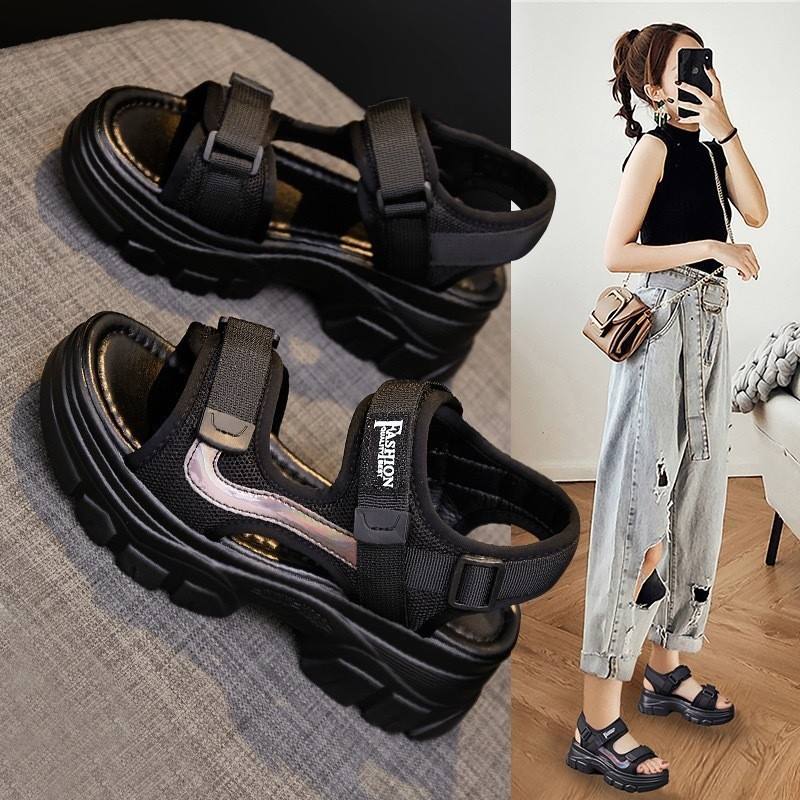 女软底2025年新款 休闲女鞋 夏季 罗马沙滩鞋 厚底松糕鞋 老爹运动凉鞋