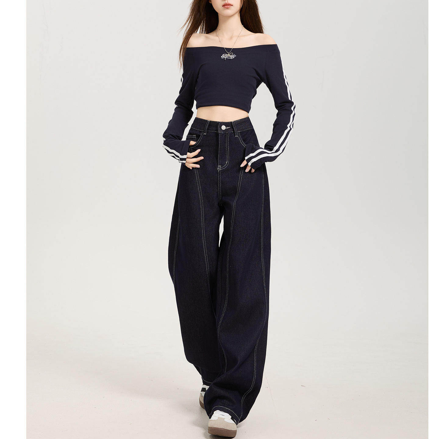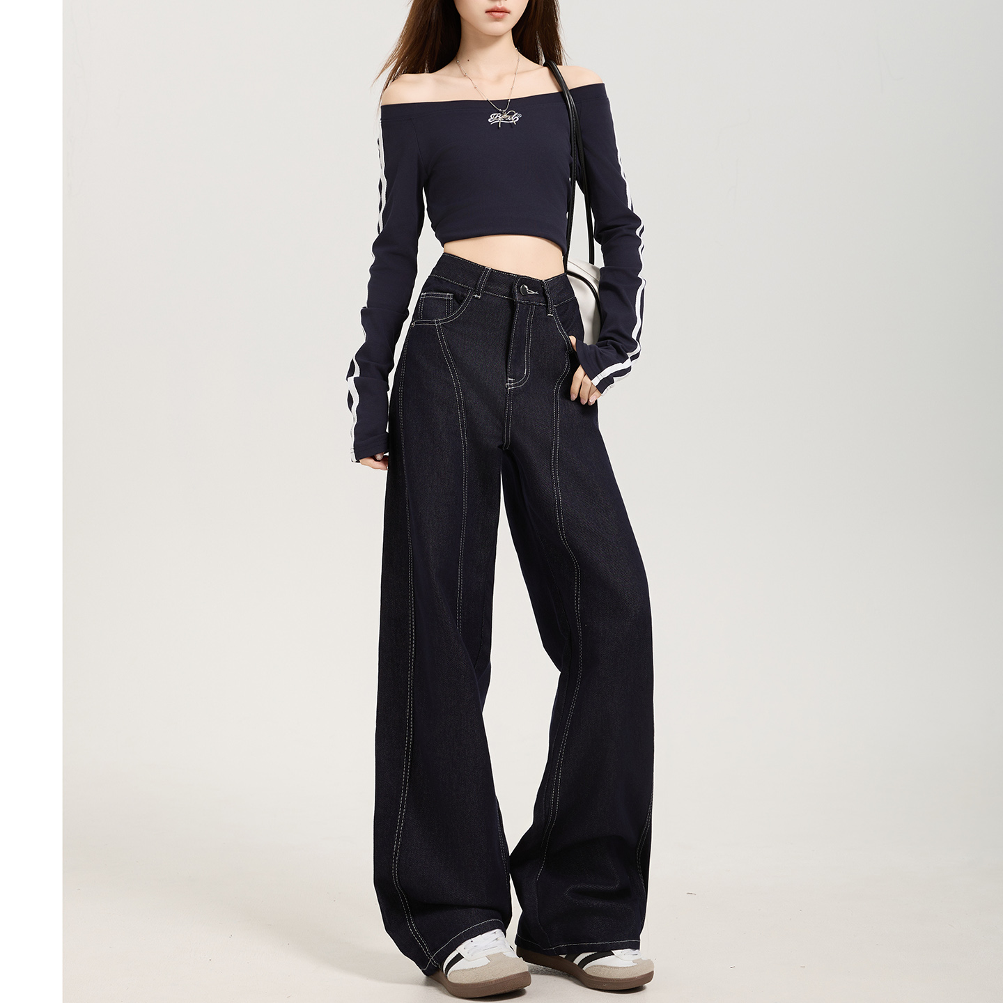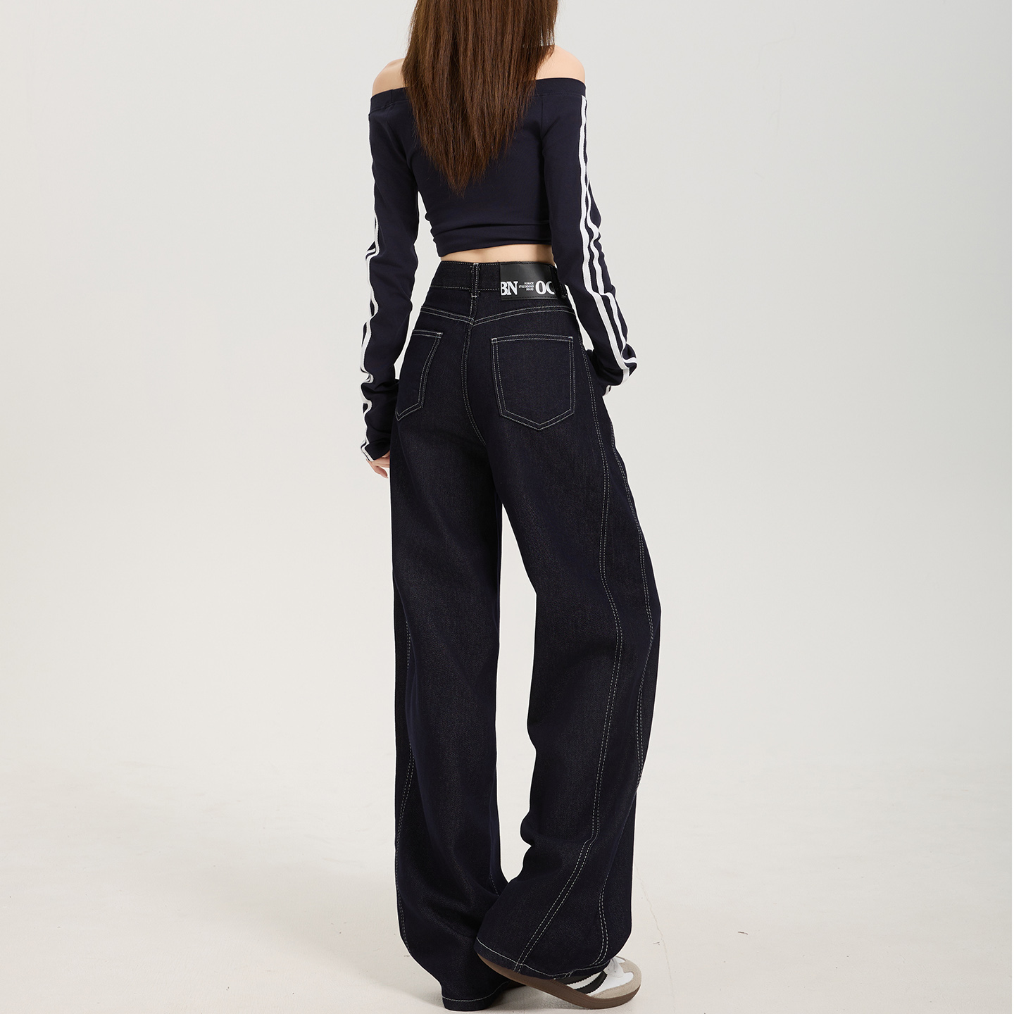阔腿牛仔裤 高腰宽松显瘦垂感休闲拖地裤 女弯刀裤 新款 2025秋季 美式