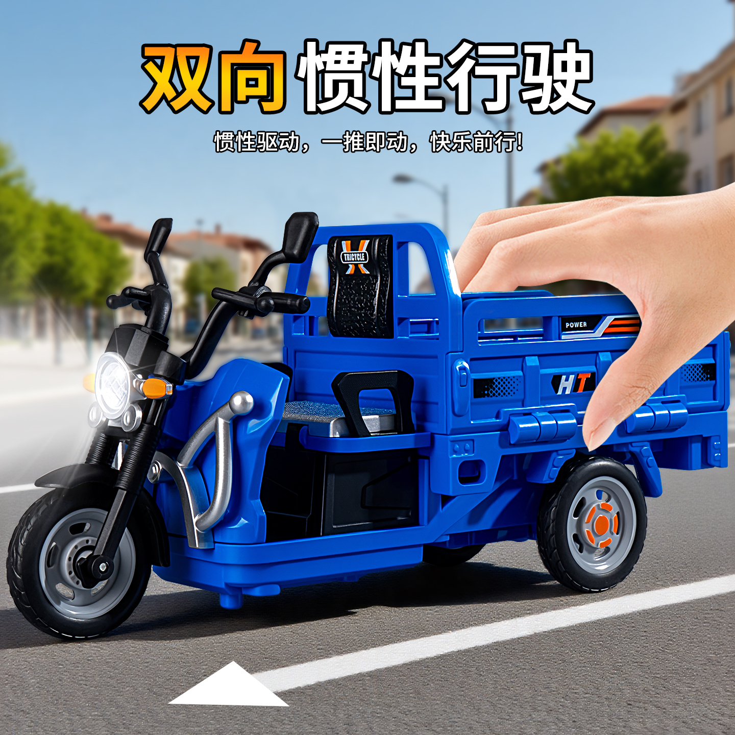 三轮车儿童仿真车模模型2025男孩汽车玩具1比24车模汽车新款 摆件