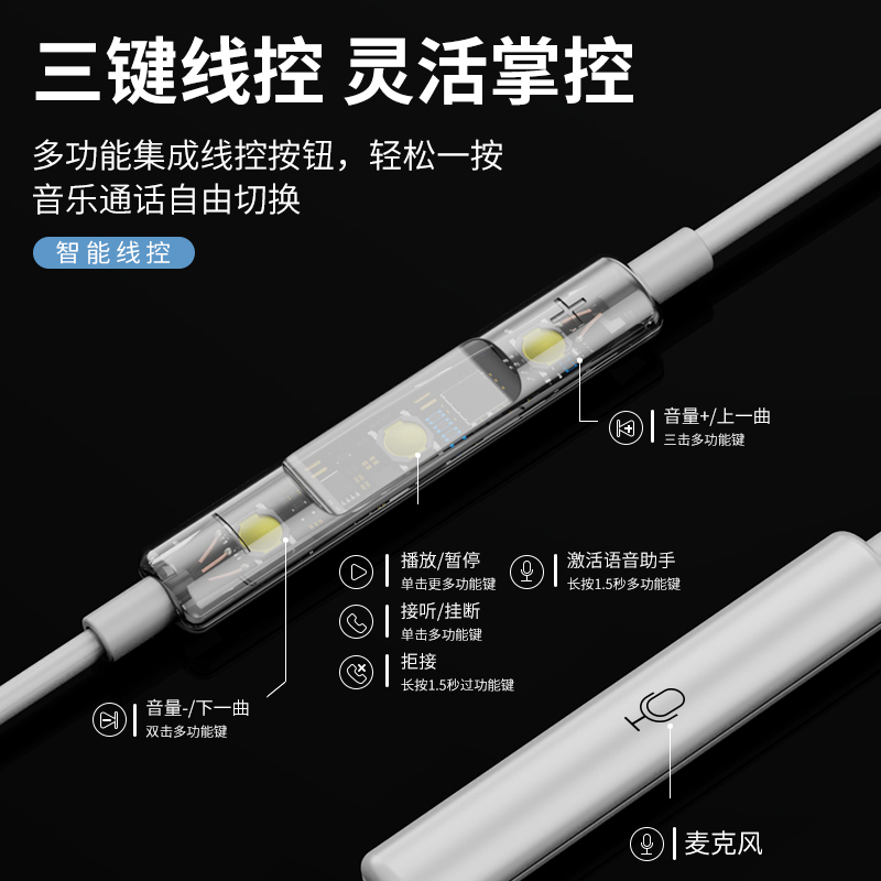 线控半入耳式 c圆口可选耳麦 普通有线耳机带麦克风适用于安卓Type