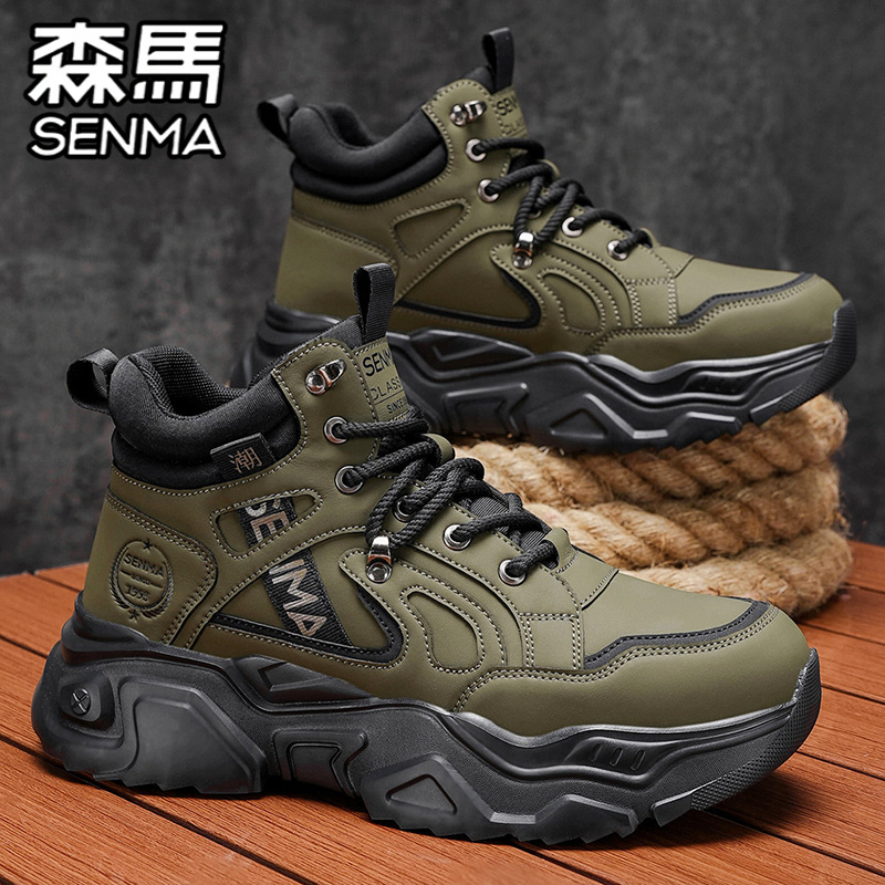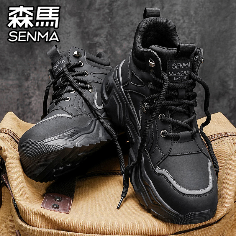 靴 高帮防水防滑户外登山运动中帮厚底增高工装 森马马丁靴男鞋 秋季