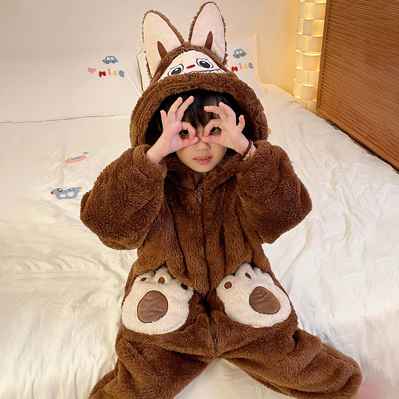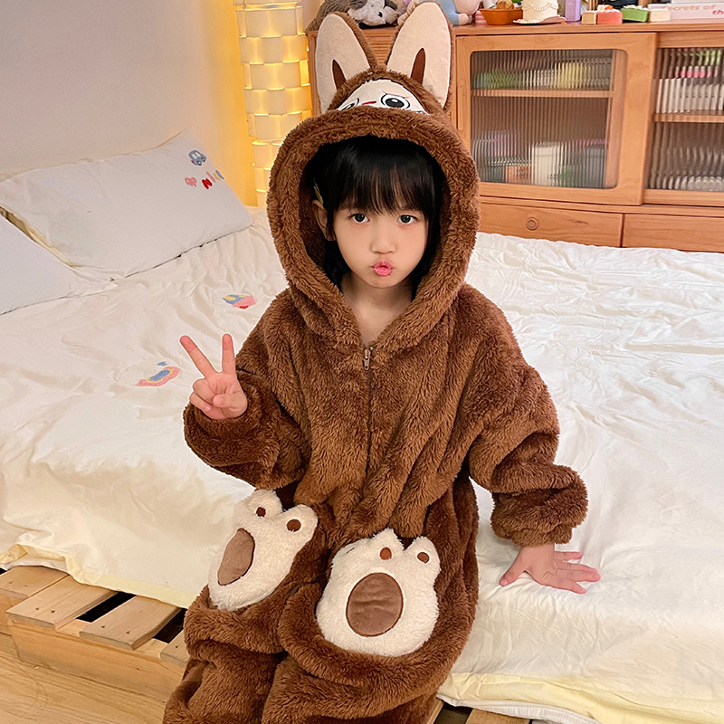 冬季 儿童保暖睡衣连体拉布布小宝宝睡袋珊瑚绒家居服女童冬天衣服
