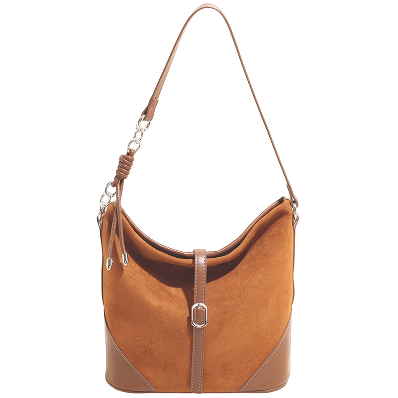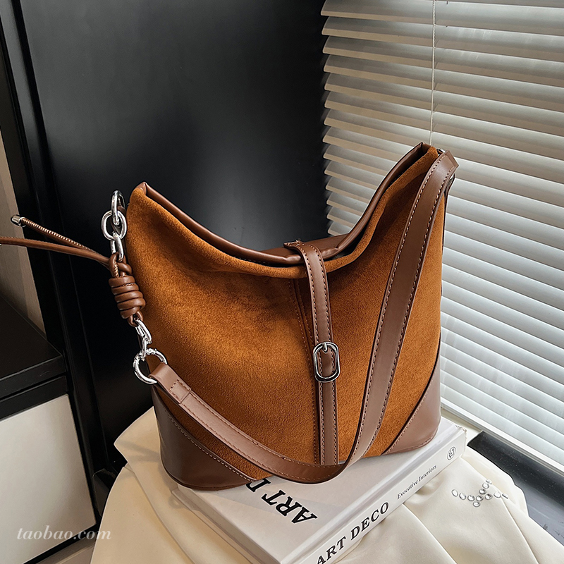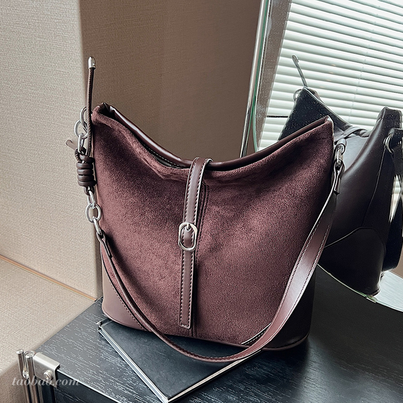 杺薇秋冬季 通勤斜挎包单肩包小众麂皮绒水桶包 复古包包女2025新款