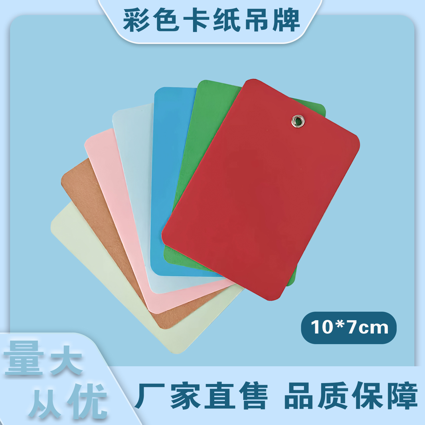 彩纸吊牌彩色硬纸卡300克标识卡红黄绿蓝粉红牛皮纸工厂车间吊牌打鸡眼铁扣加固货架物料标识卡挂签印刷定制