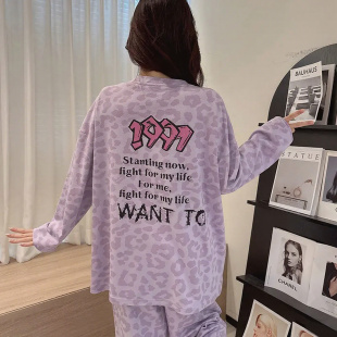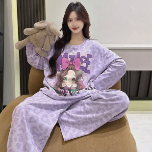 纯棉女士长袖 睡衣新款 秋款 家居服秋冬全棉大码 芬腾春秋季 套装 女款
