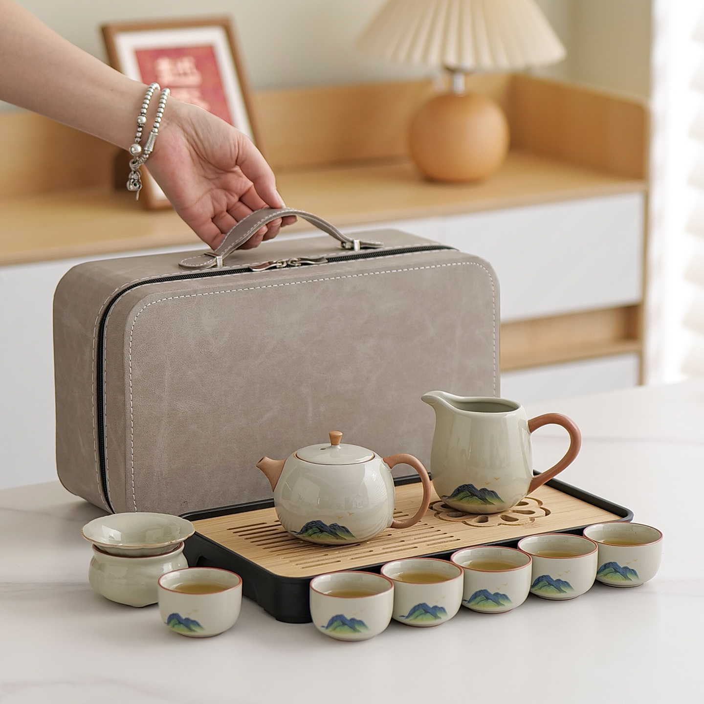 快客杯一壶露营陶瓷便携旅行茶具套装 功夫户外泡茶壶出差旅游茶杯