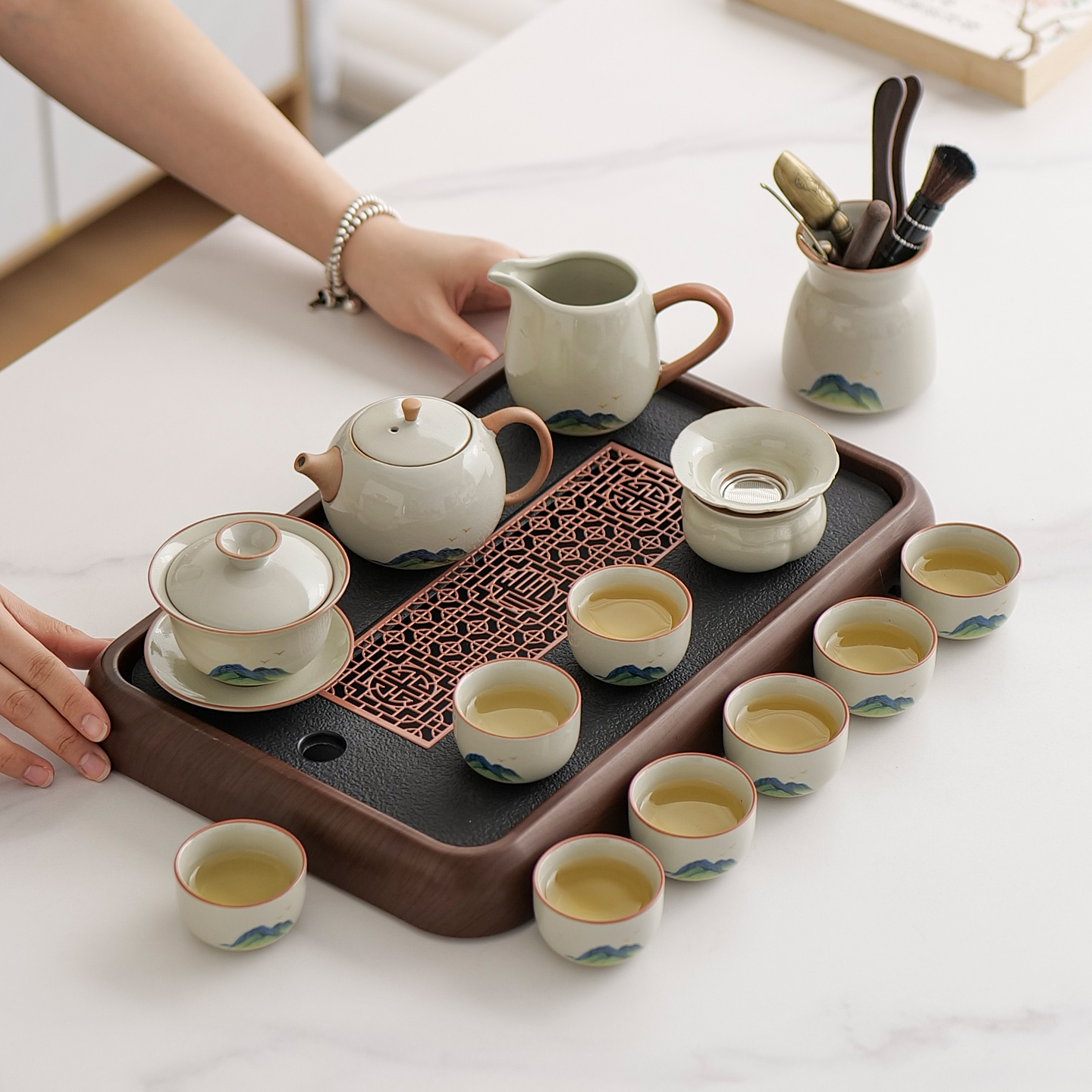 整套茶具套装 全自动烧水壶一体茶盘烧水家用喝茶茶台办公功夫泡茶