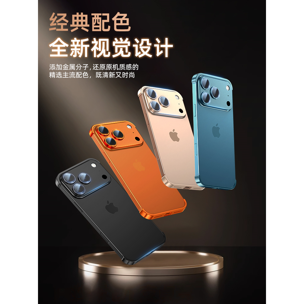 适用iphone17promax手机壳防摔自带镜头保护苹果17Pro超薄无边框外壳plus散热高级感14pro外壳 金属四角垫