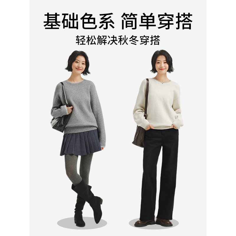 含羊毛绒感针织衫 新款 内搭 上衣2025年冬季 热风女士毛衣圆领打底衫