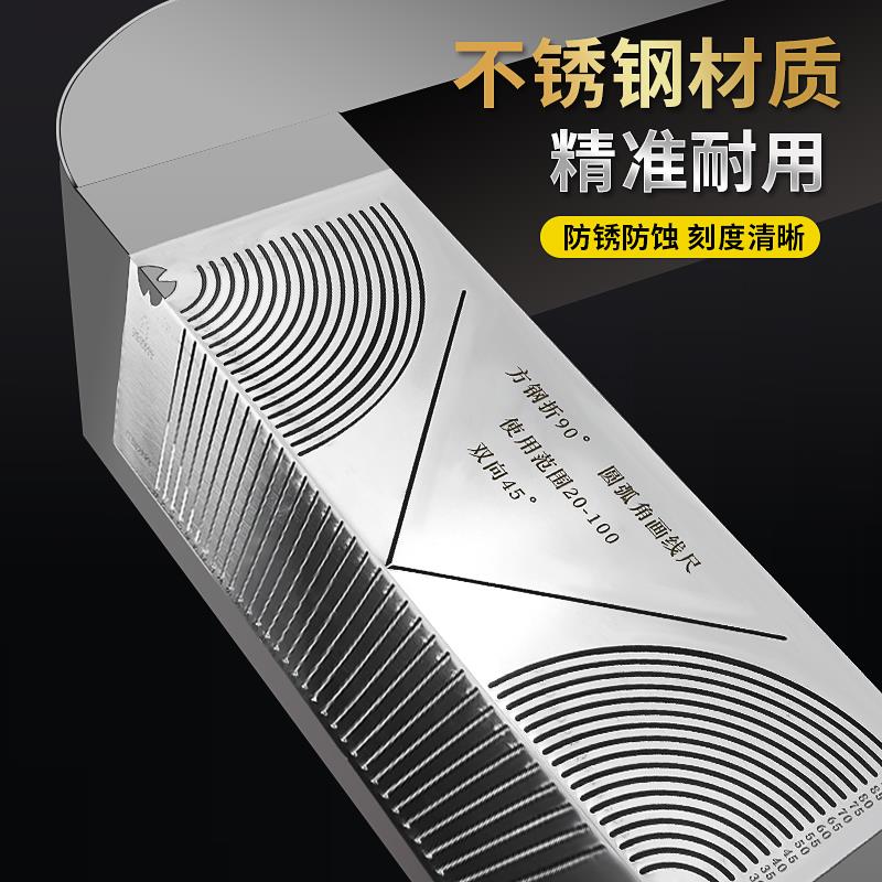 不锈钢方管画线神器方钢角尺90度高精度直角角度调节器圆弧角划线