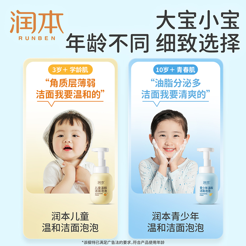 润本儿童洗面奶青少年控油洁面青春期男女孩童专用初中学生护肤