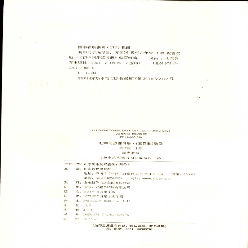 2025五四制6六年级上册数学初中同步练习册配鲁教版 社 山东教育出版