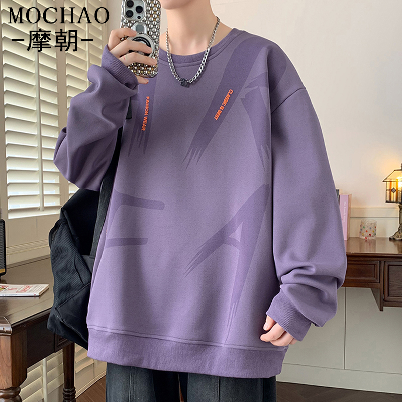 百搭套头上衣 新款 查尔斯桃心美式 太阳和月亮印花卫衣男连帽春秋季