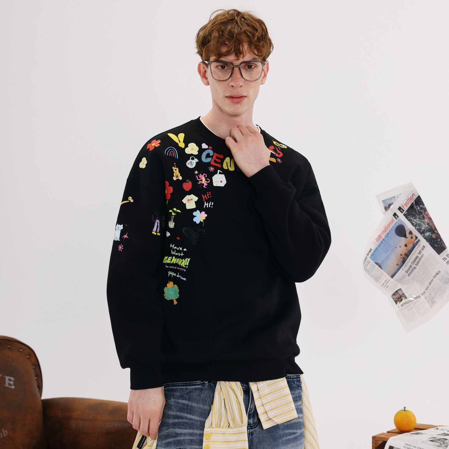 上衣简约圆领多色可选加绒卫衣男 长袖 GENANX闪电潮牌2025秋季 新款