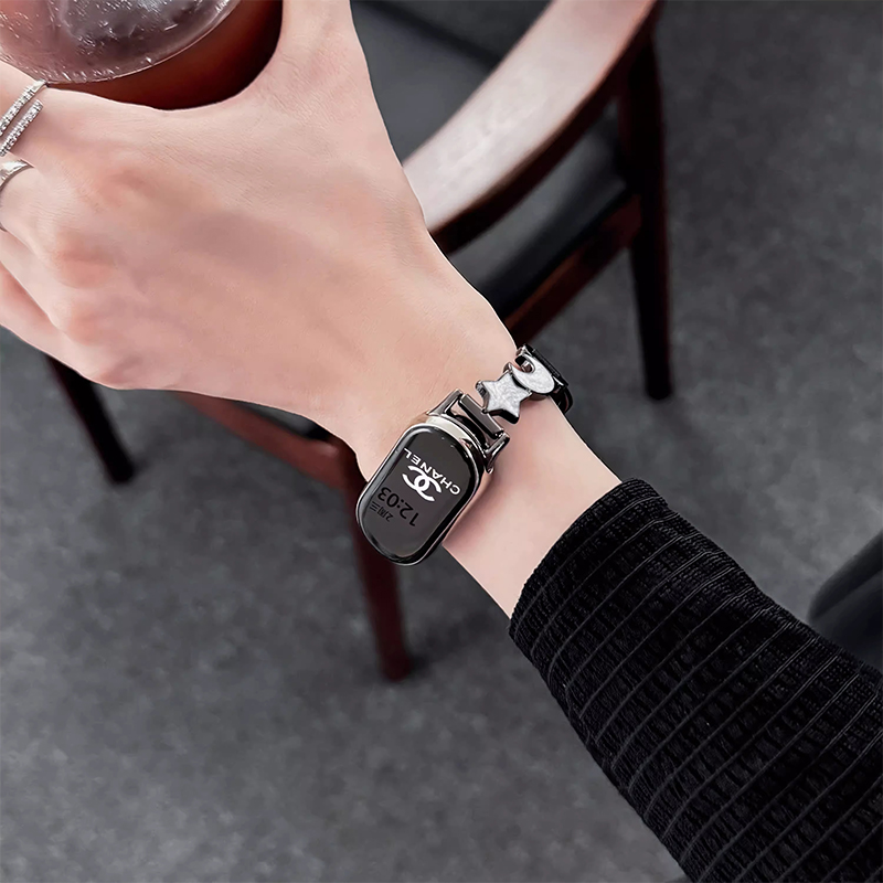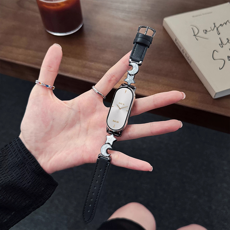 适用小米手环10代表带9 表带金属星星月亮智能运动NFC创意女生手链高级皮质手腕带 8新款