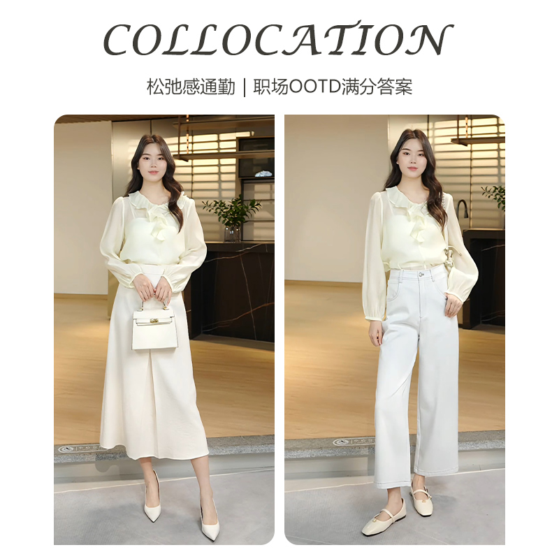 高端缎面蝴蝶结飘带通勤衬衫 女装 女别致上衣 新款 晚白红色衬衣秋季