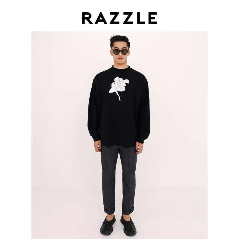 印花长袖 黑色秋季 T恤 地素奥莱男装 RAZZLE