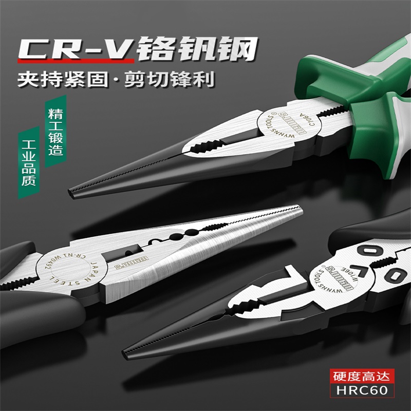 德国尖嘴钳电工专用工业级不锈钢多功能老虎钳家用省力6 8寸钳子