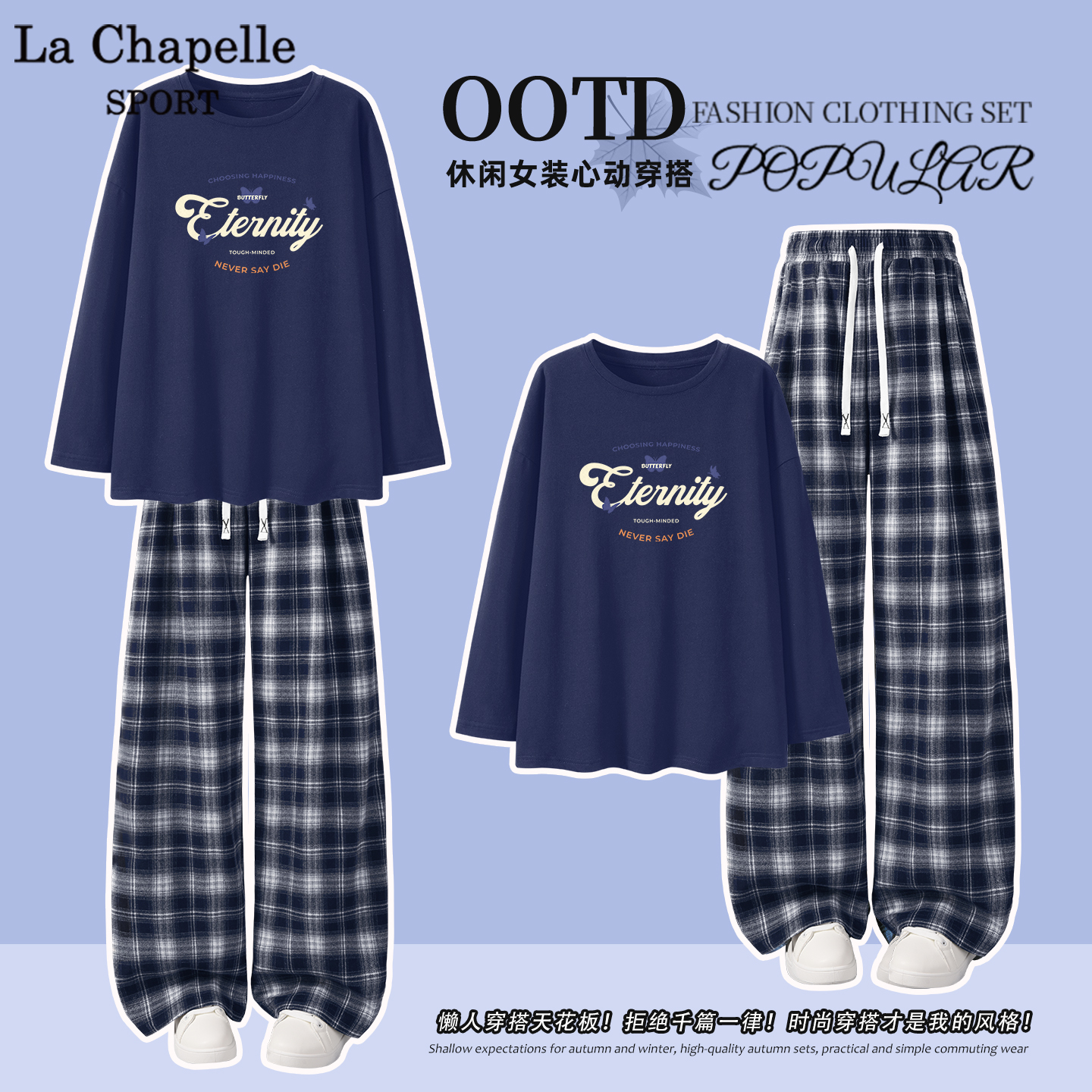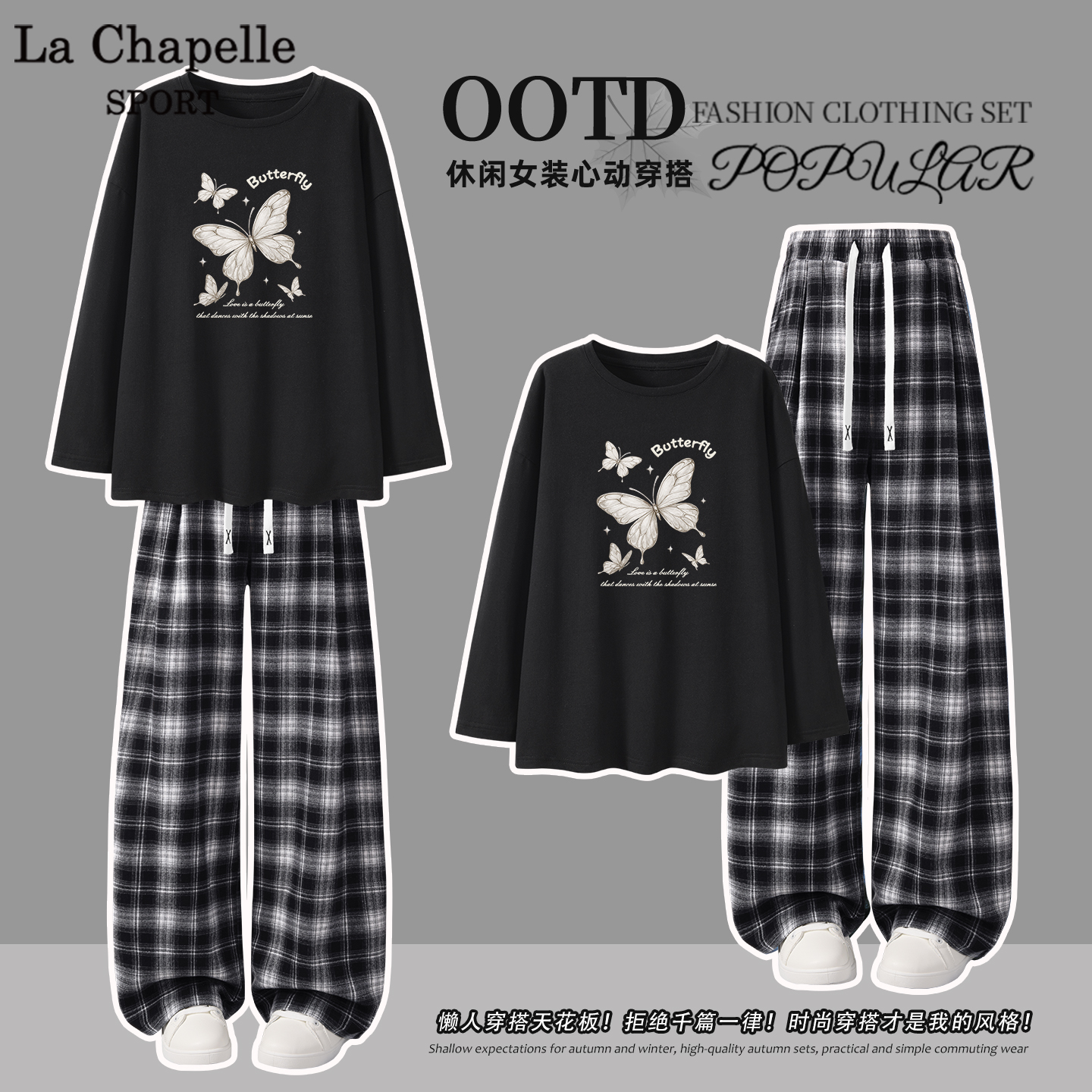 裤 早秋穿搭一整套初中生纯棉长袖 子X 女2025新款 拉夏贝尔运动套装