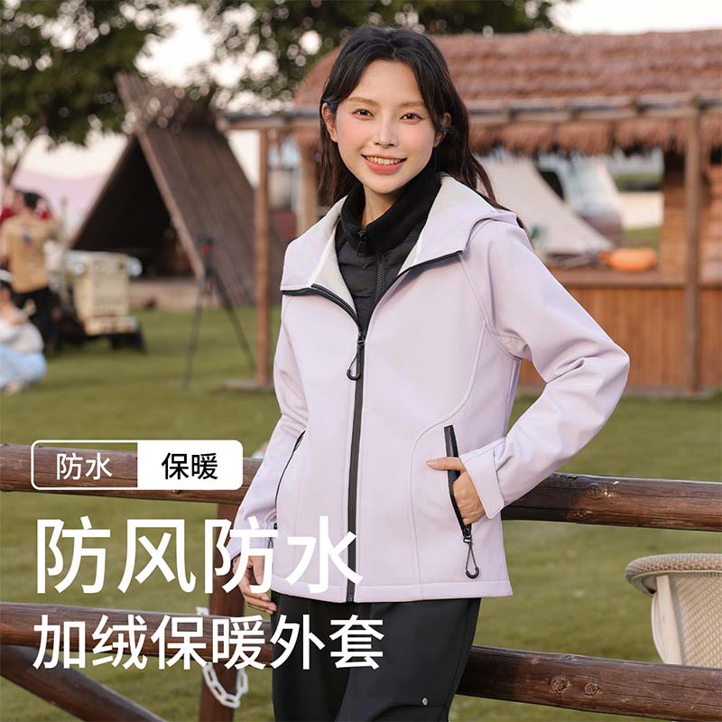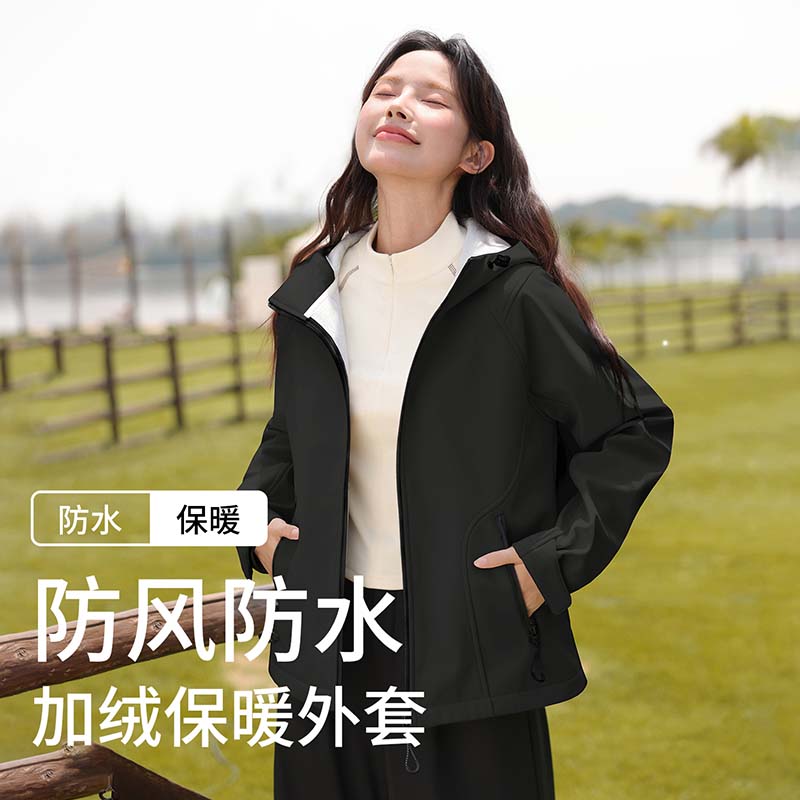 班尼路三防夹克外套女2025新款 户外保暖防风防水连帽上衣M 秋冬季