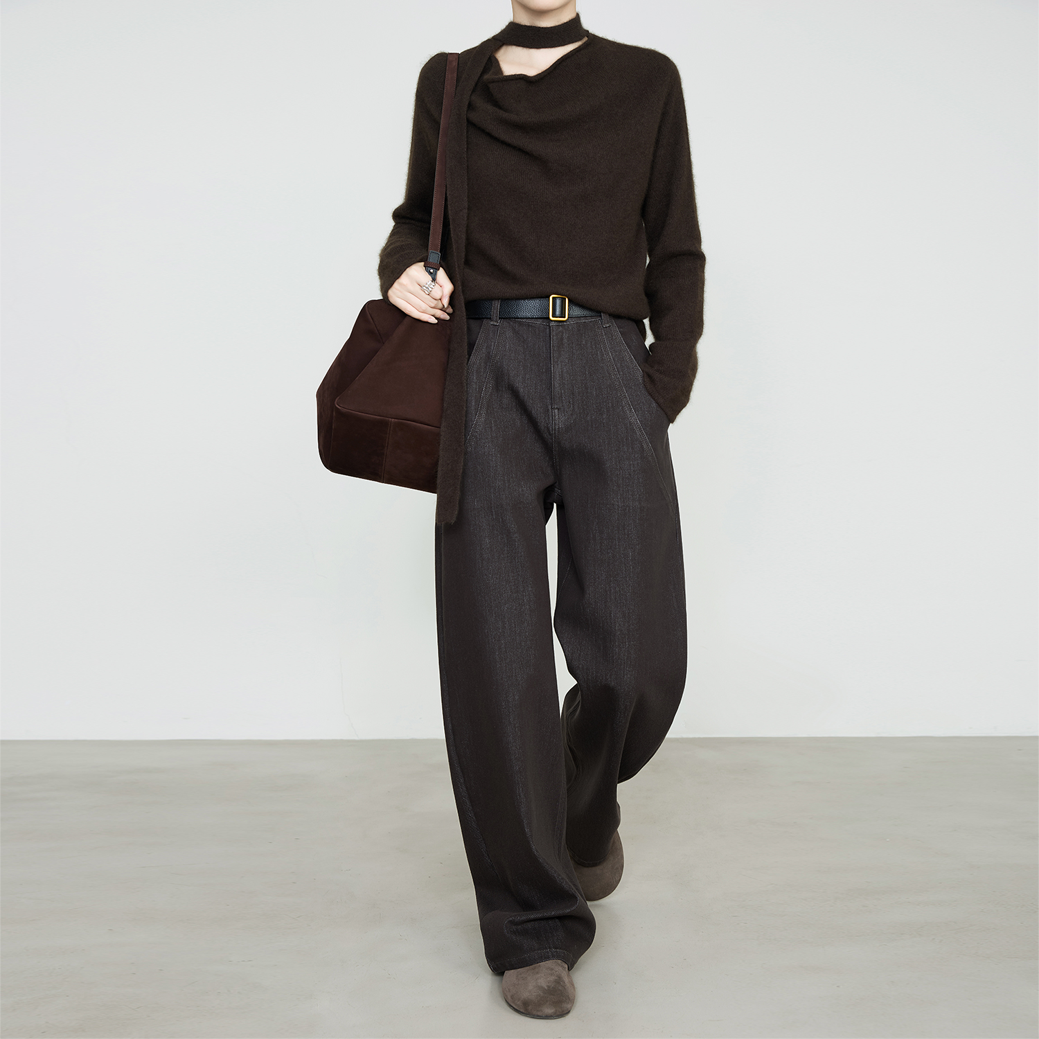 女2025年新款 子女装 秋季 复古宽松直筒阔腿裤 504791 时尚 三福牛仔裤