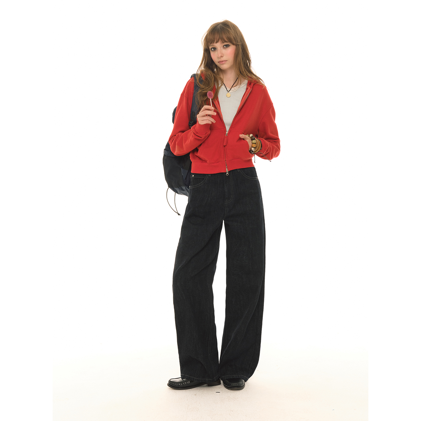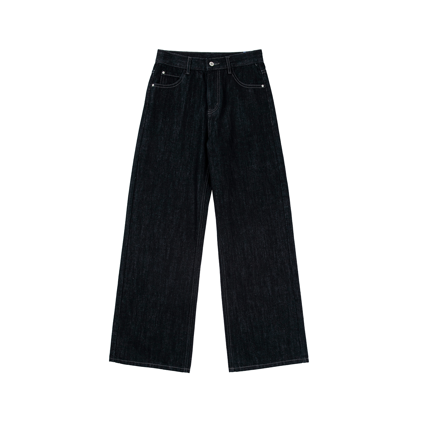 早秋气质宽松百搭阔腿裤 UNRETRO深蓝色高腰直筒牛仔裤 女2025新款