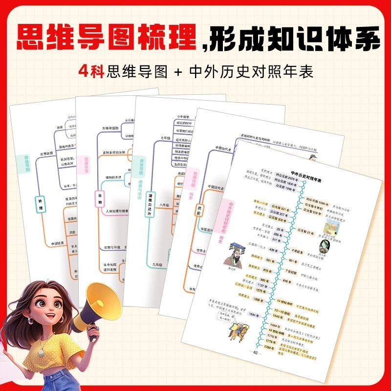 图解秒记初中小四门涵盖高频核心知识考点梳理 备战生地会考 汉知简 生物地理晨背晚默一本通