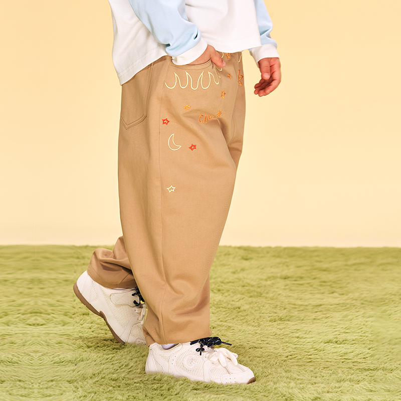 宽松潮 新品 迪士尼联名史迪奇系列儿童刺绣柔软舒适直筒长裤 秋冬季