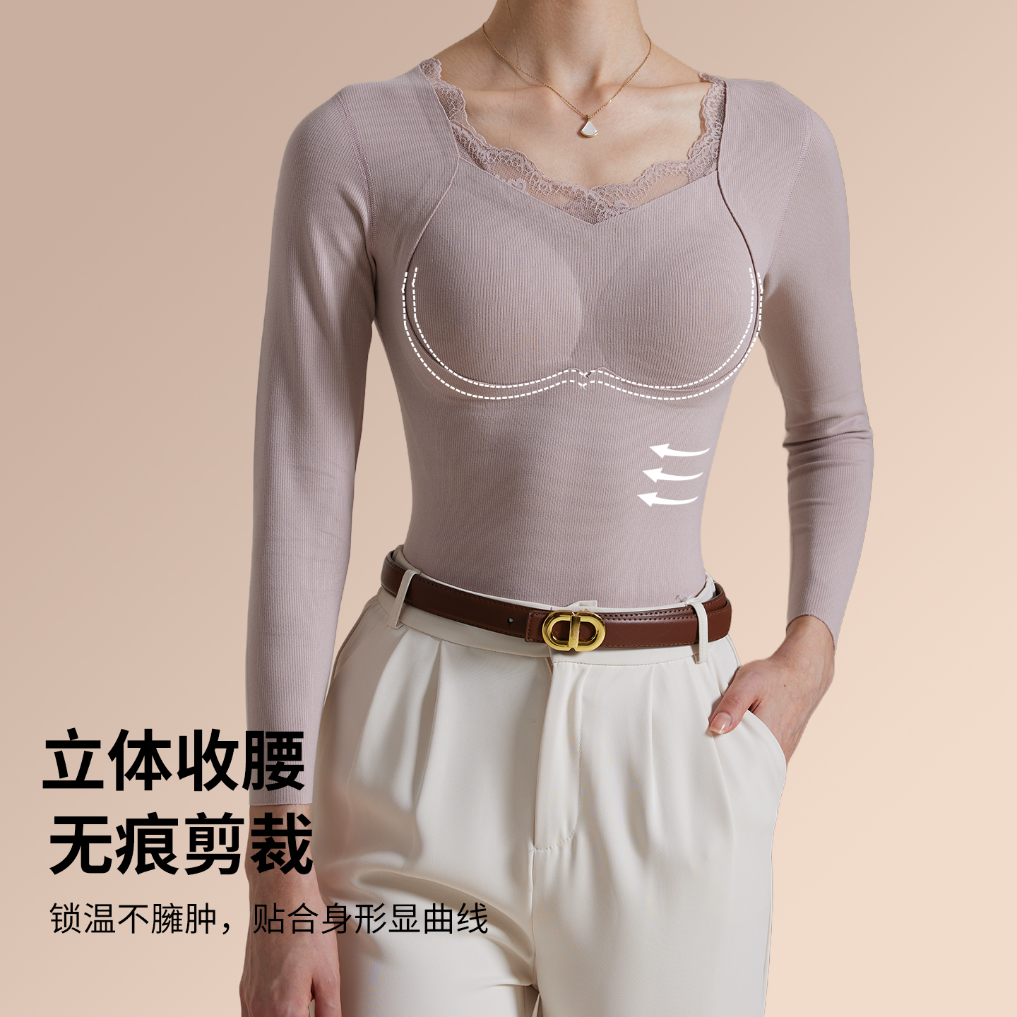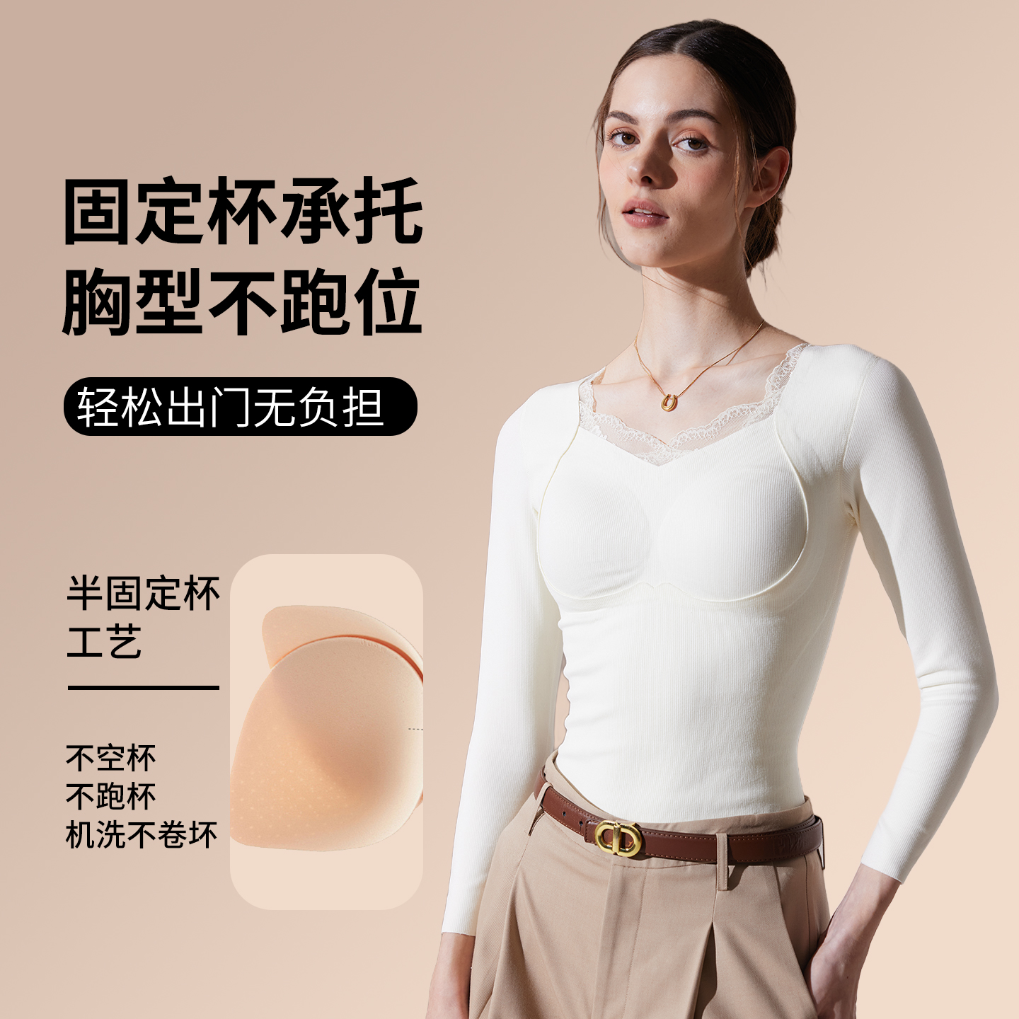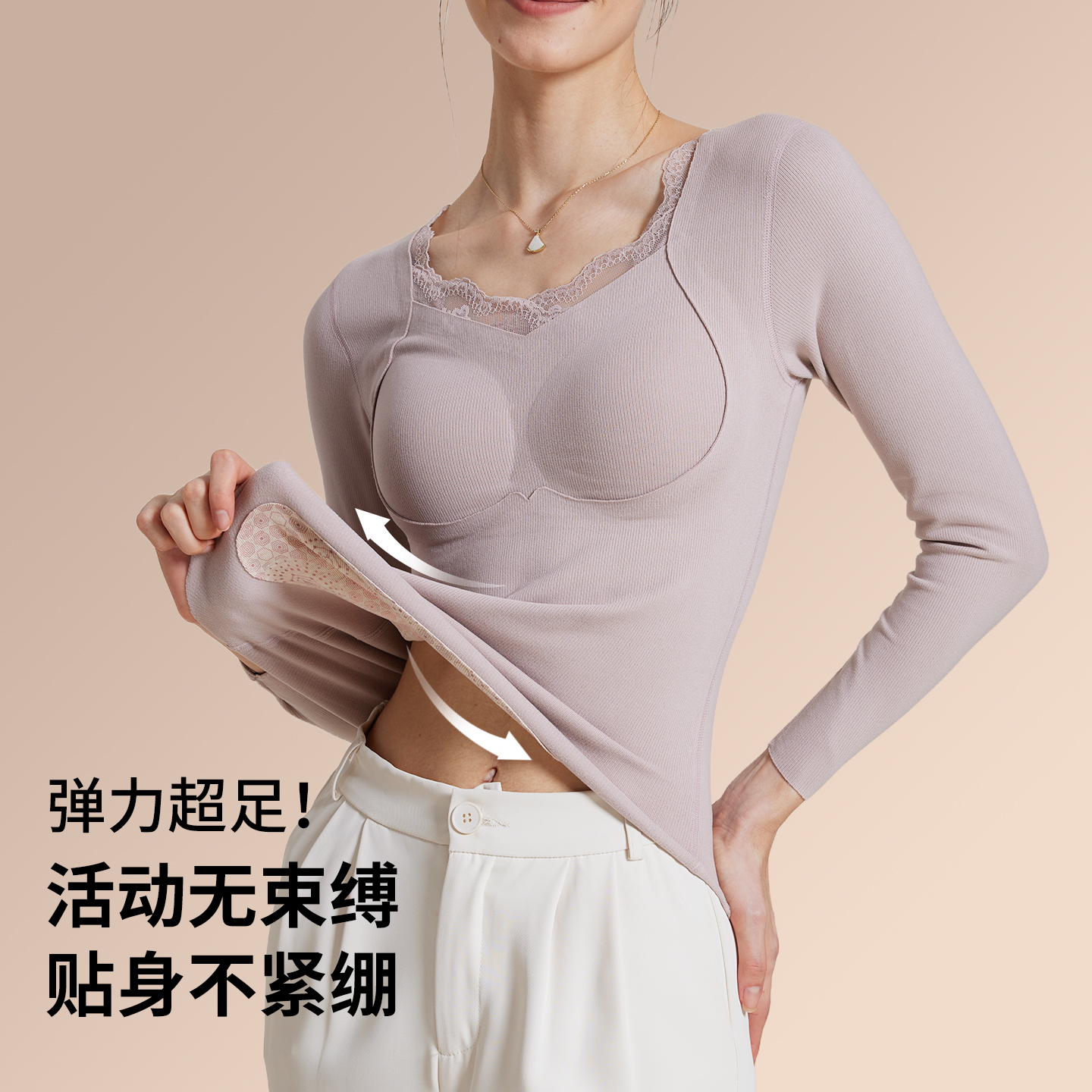 婷美保暖背心女2025秋冬新款 内衣防寒内搭打底上衣秋衣 带胸垫长袖