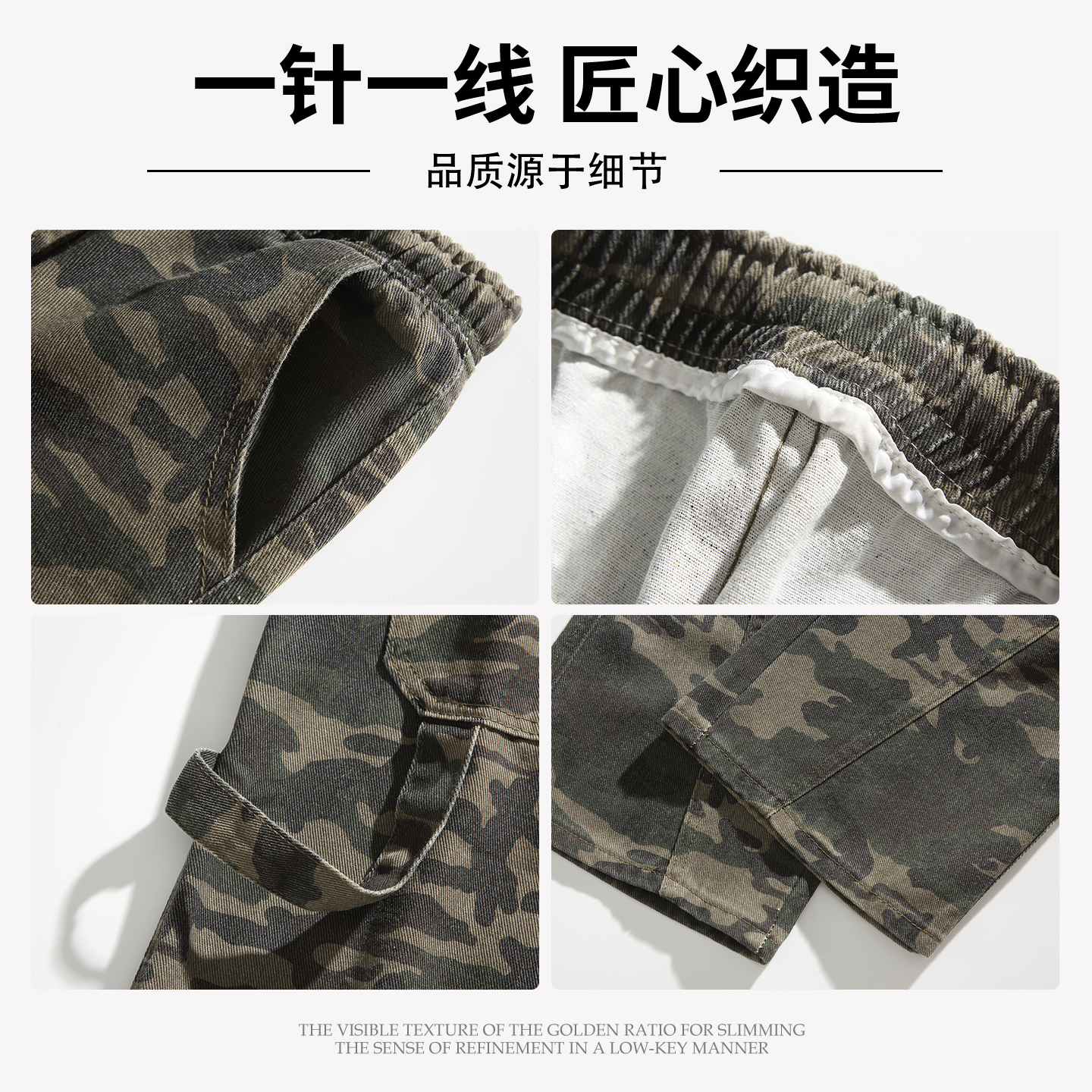 迷彩工装 高街直筒裤 牛仔裤 潮牌多口袋宽松阔腿裤 子男 男春秋季 美式