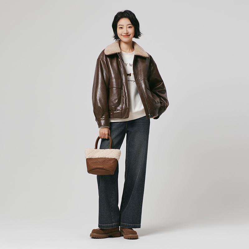 显瘦宽松长裤 热风女士直筒牛仔裤 侧分割宽腿牛仔裤 新款 2025年冬季