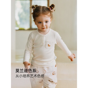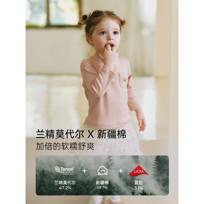 5岁 T恤莫代尔棉透气男孩上衣女宝宝衬衣1 Oak Family春秋儿童长袖