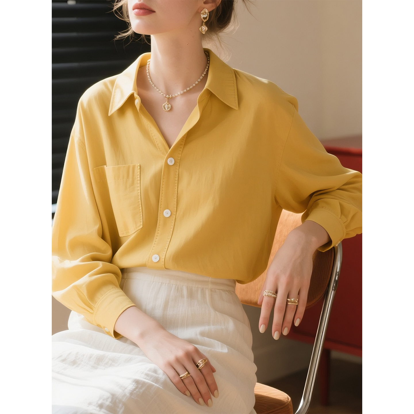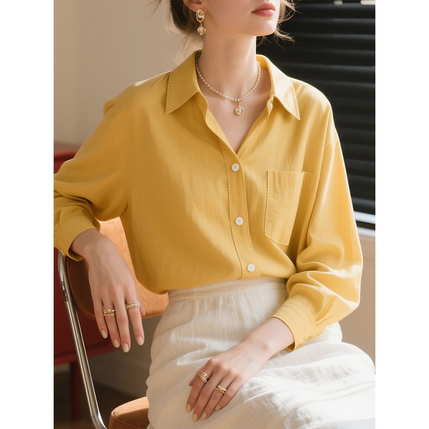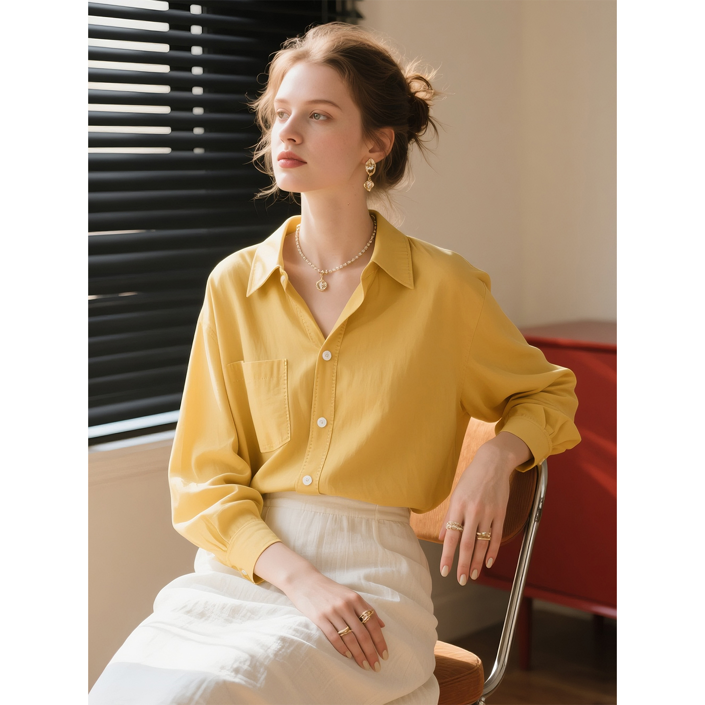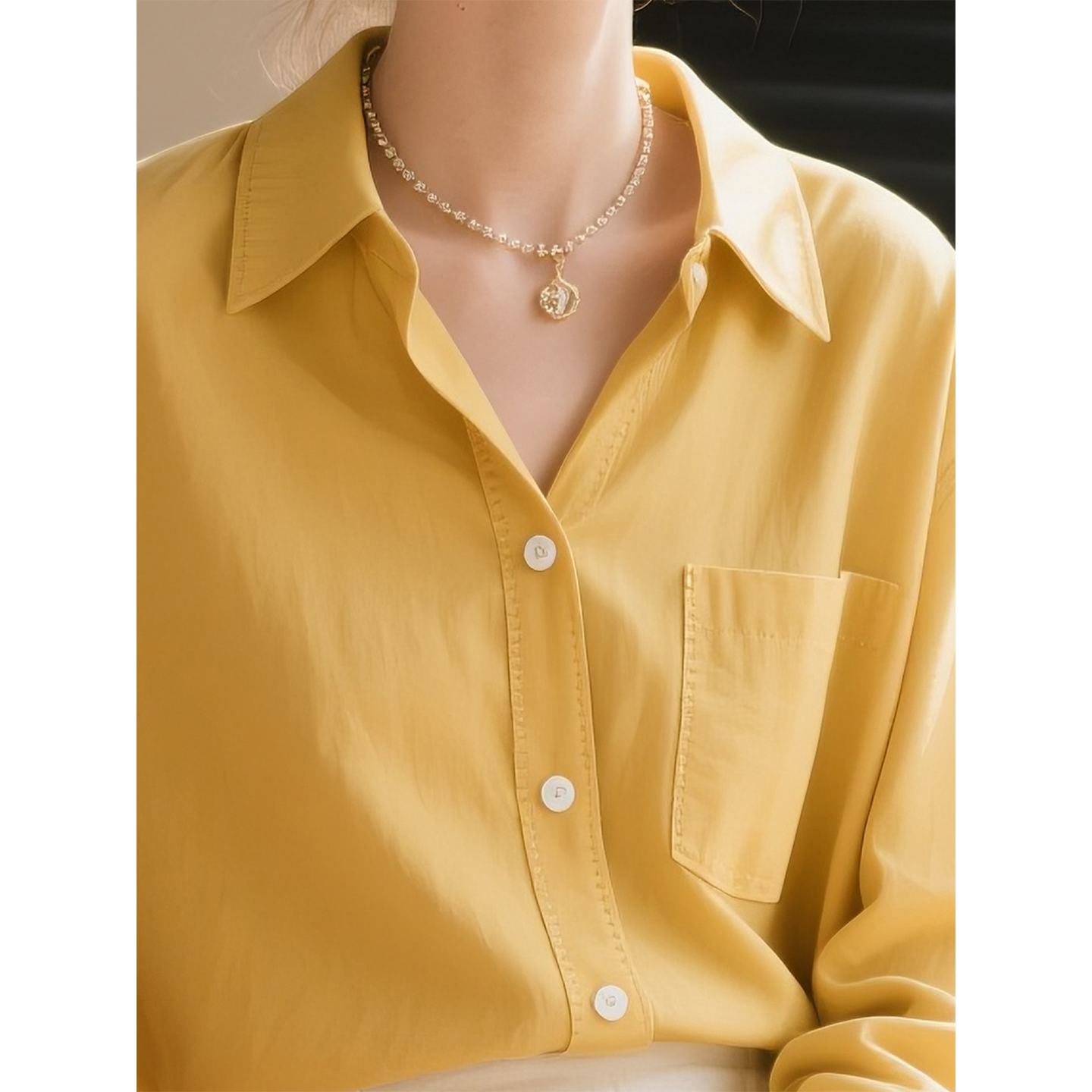 COCOBELLA重工压褶缎面优雅立领衬衫 两穿衬衣SR0045 女新中式
