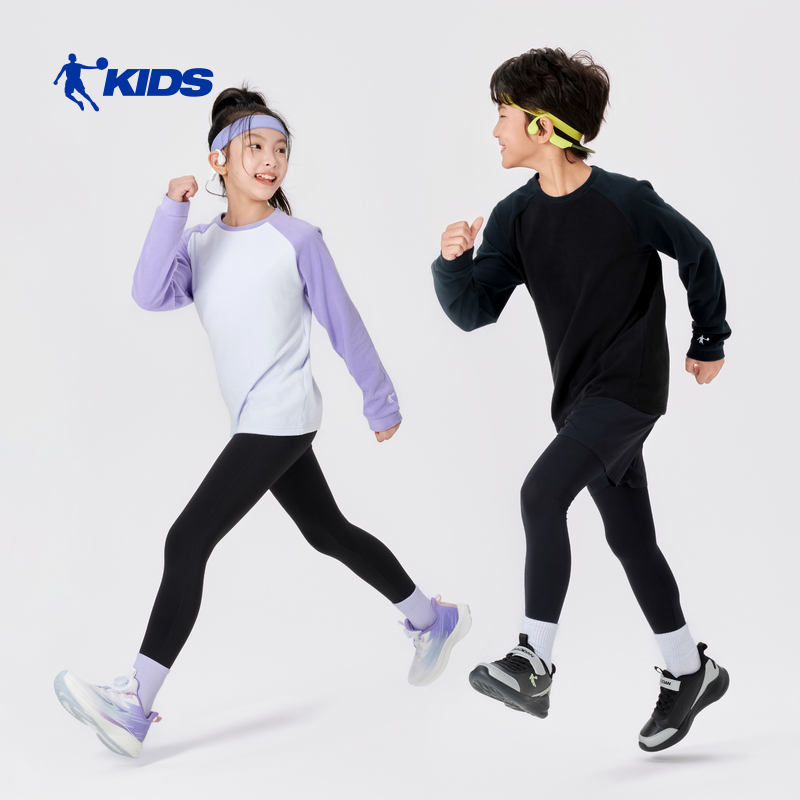 洋气保暖打底衫 T恤2025秋冬新款 女童撞色上衣 男童长袖 乔丹儿童装