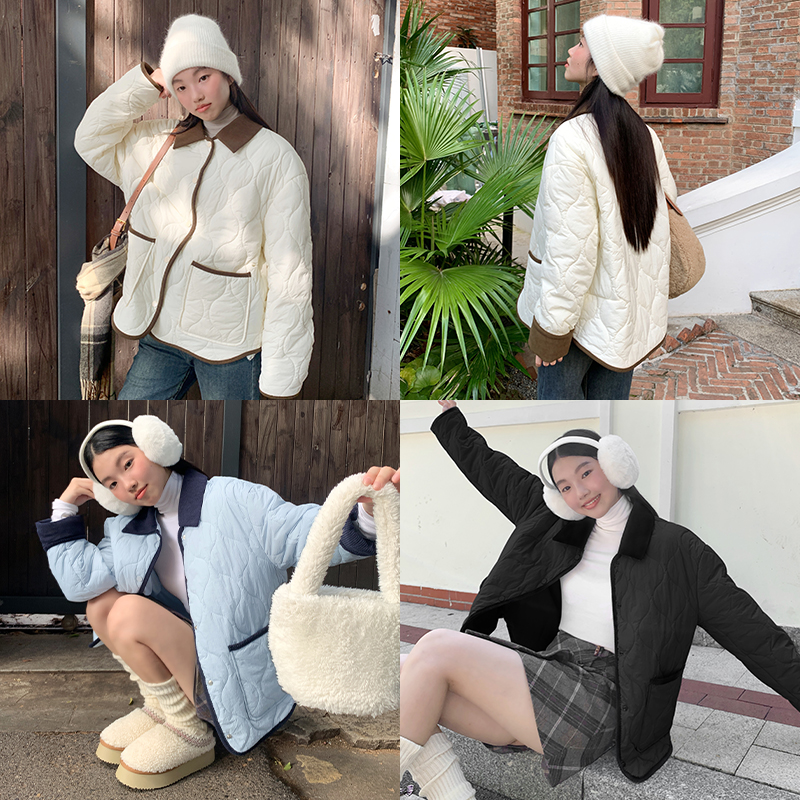 TeenieWeenie小熊女棉服2025秋冬宽松菱形绗缝外套 赵露思同款