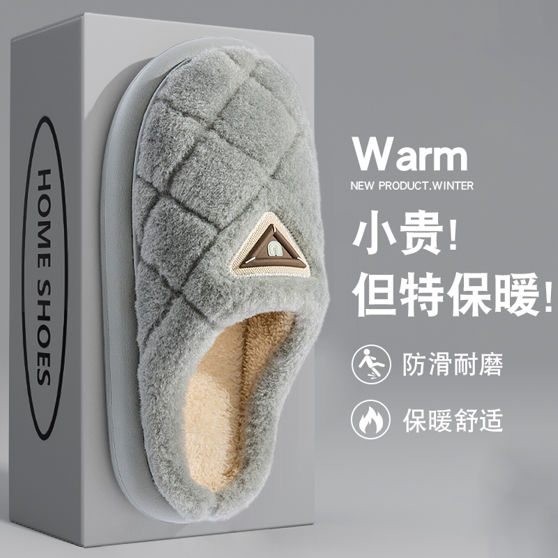 室内家居防滑居家用加绒毛毛拖鞋 棉拖鞋 2025新款 秋冬季 男冬天 男款