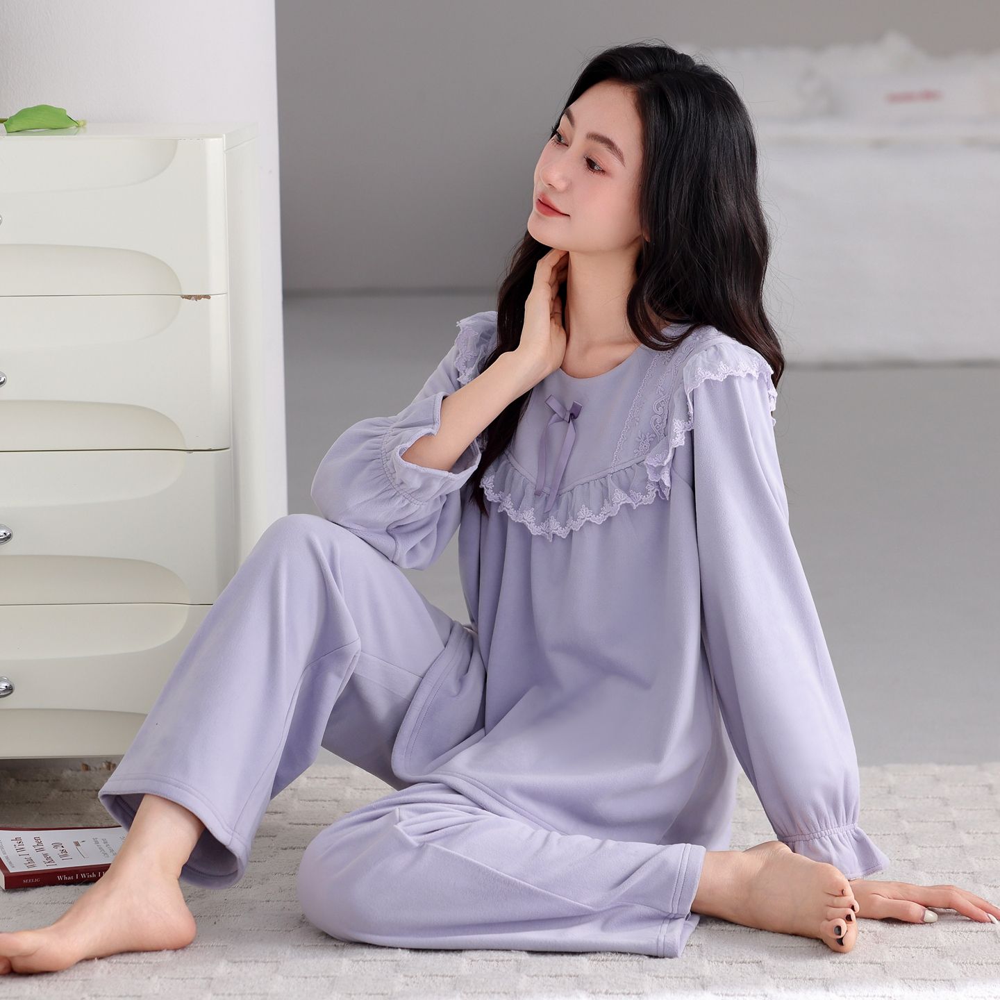 2025新款 海岛绒睡衣女薄绒秋冬天加厚加绒宫廷风珊瑚绒保暖家居服